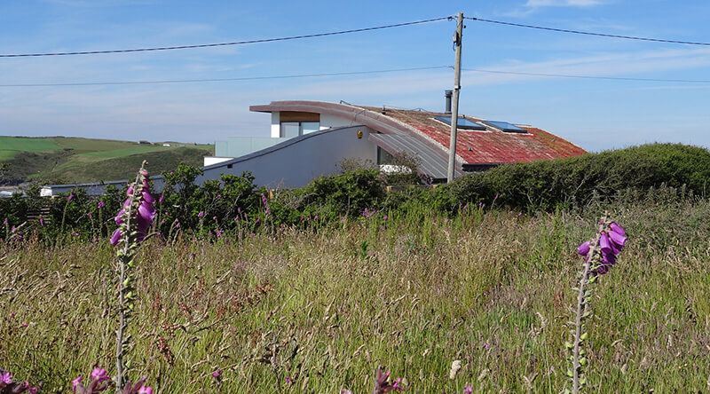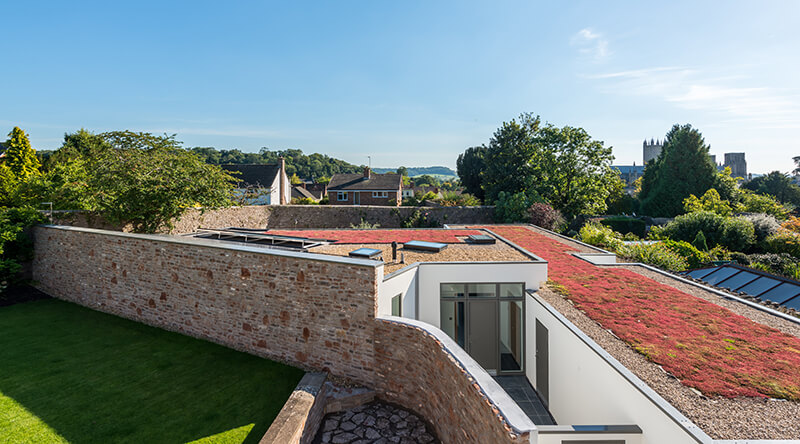 The project: This low-energy contemporary home sits in harmony with the landscape and large garden that surrounds it. Mellalue was designed with a curved green roof to maximise space and minimise its impact on the client’s neighbours.