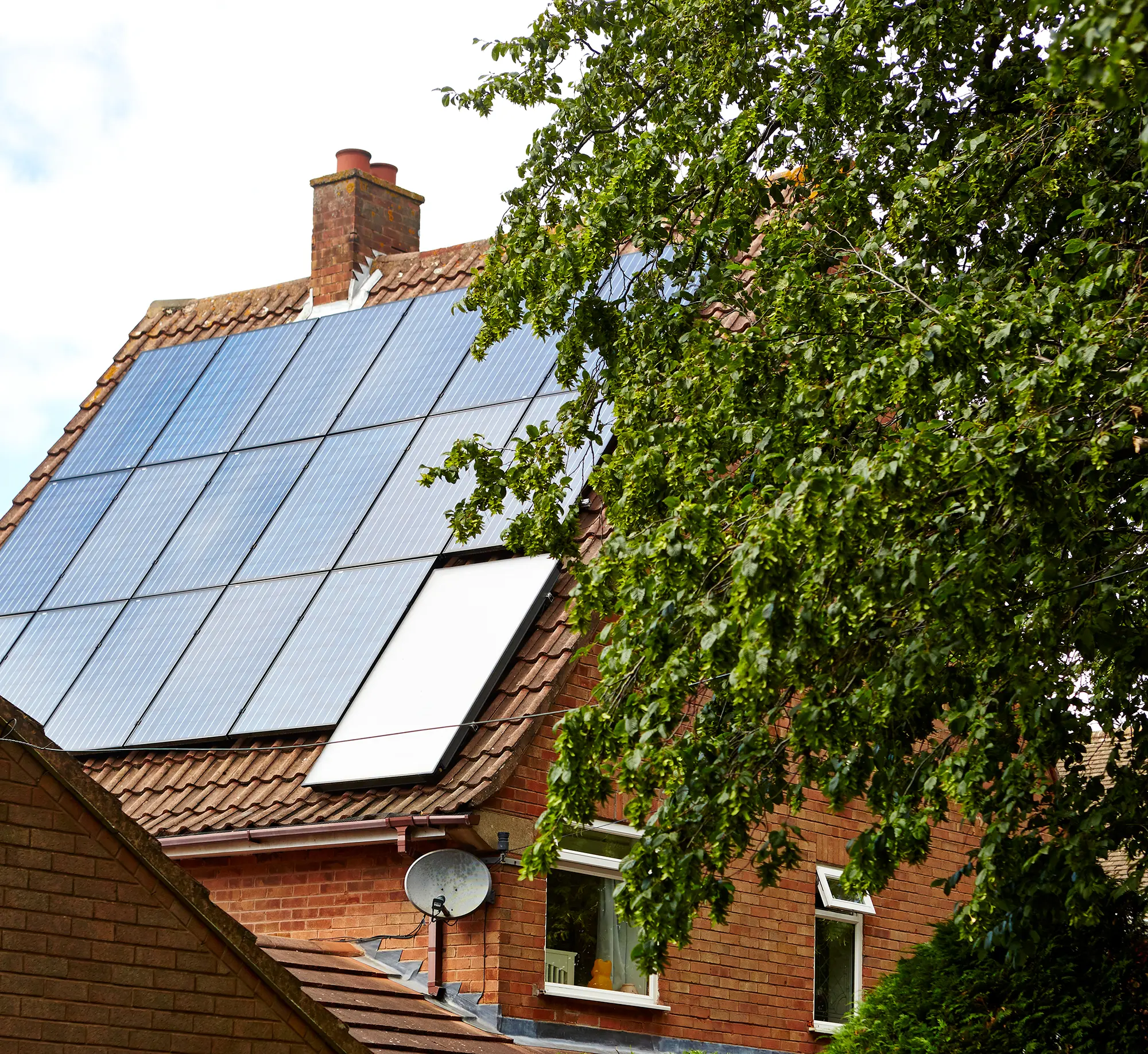 This thermal store – effectively a hot water tank – can act both as a buffer and a store for the output from roof-mounted solar panels. Domestic hot water can come from a coil inside the thermal store, which at the same time transfers heat from the solar panels into the heating system. Remember that solar thermal systems are not usually compatible with standard combi boilers, as they need a hot water storage tank.