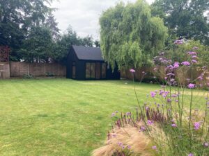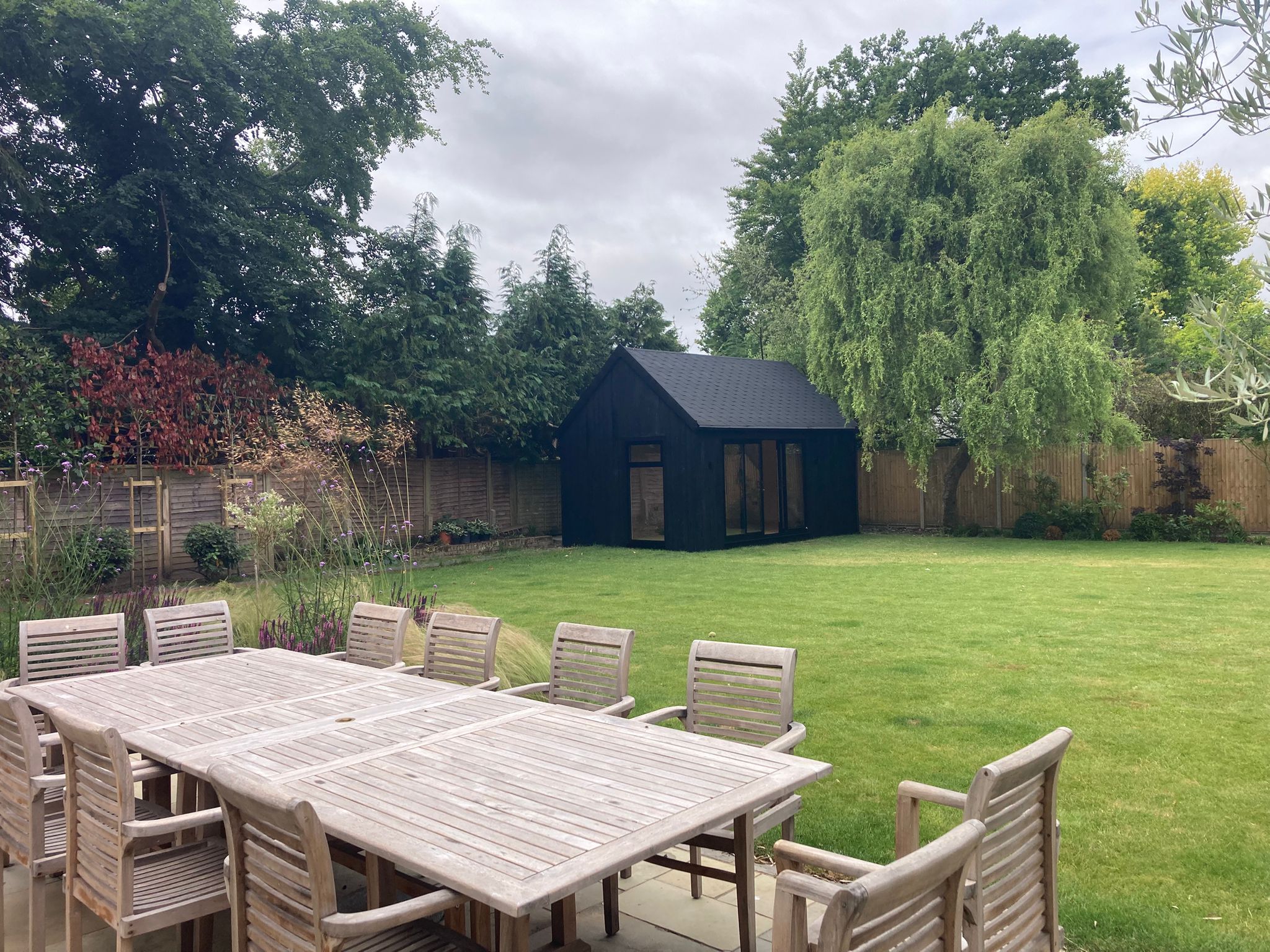 Overall, the Guildford garden gym is a purpose-built structure that balances visual design with practical usability, offering an open, durable, low-maintenance space for home exercise within a landscaped garden setting.