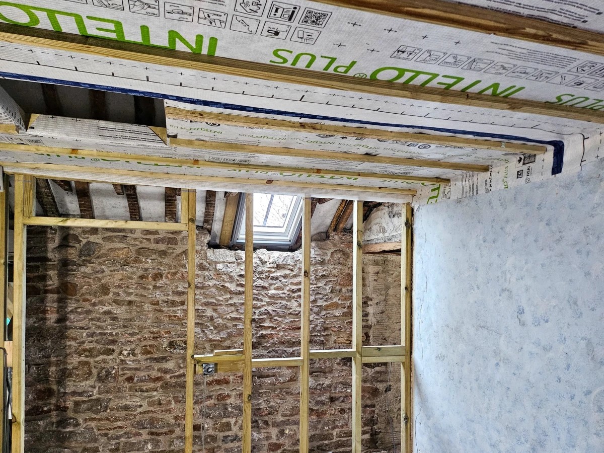 To achieve this, Gutex Thermoroom and Multitherm wood fibre boards were installed throughout, providing high levels of natural insulation while maintaining breathability. Particular attention was paid to airtightness, with Pro Clima Contega Solido SL and Pro Clima Profil tapes carefully applied around windows to minimise heat loss and eliminate unwanted drafts.