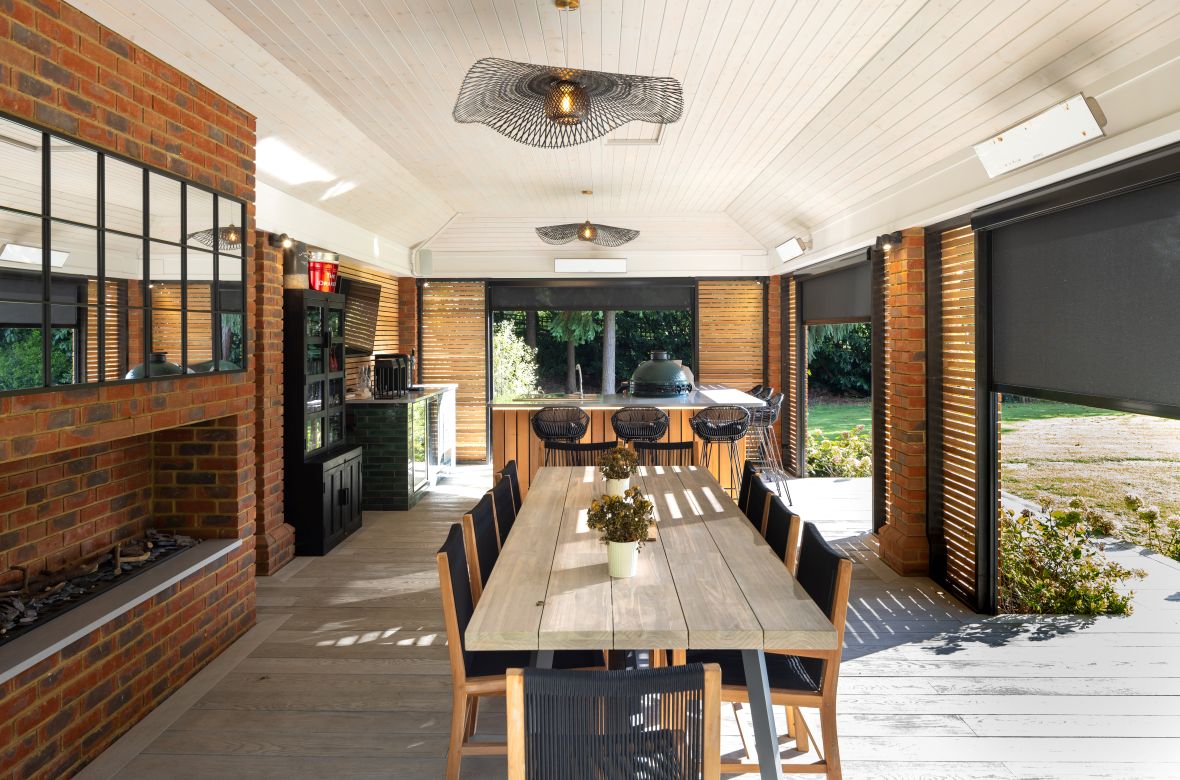 GET TWO FREE TICKETS HEREFixscreen external blinds are motorised, wind-resistant roller blinds designed for vertical glazing – including large windows, sliding doors and curtain walling. They’re fitted on the outside of the building, so they intercept sunlight before it reaches the glass, which helps cut solar heat gain, reduce glare and prevent rooms overheating in summer. That’s particularly useful for homeowners planning big expanses of glazing in extensions, new builds and garden-facing living spaces.