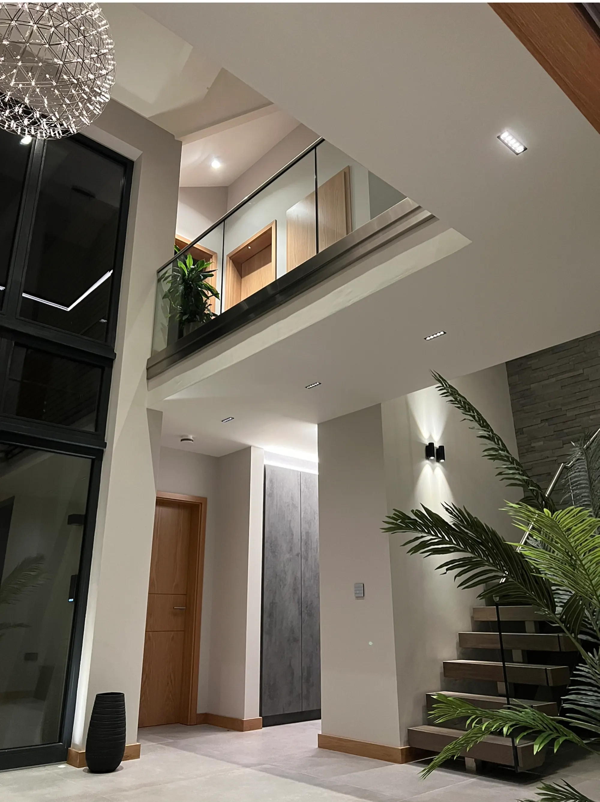 Meisterstueck HAUS was approached to tender for the shell house construction. The cost of the shell house was calculated and after a visit to the factory in Hameln, Germany with the architect the client was convinced that a shell house provided by Meisterstueck HAUS would be both sustainable and highly efficient. “Opting for the Meisterstueck HAUS closed panel construction meant that our house was weathertight within four days and trades could work uninterrupted by conditions outside throughout the job,” says the couple.