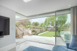 The rear extension was designed with a dog-leg layout rather than a full-width glass box, incorporating a covered porch typical of Kiwi homes. Minima Sliding’s doors, including a pocket door, were installed to maximise glazing, provide wide-open access to the garden, and create a minimal-framed, visually clean transition between interior and exterior. The doors’ slim 20 mm sightlines and flush thresholds ensured that the garden becomes a central feature of the home while maintaining thermal performance and easy operation.