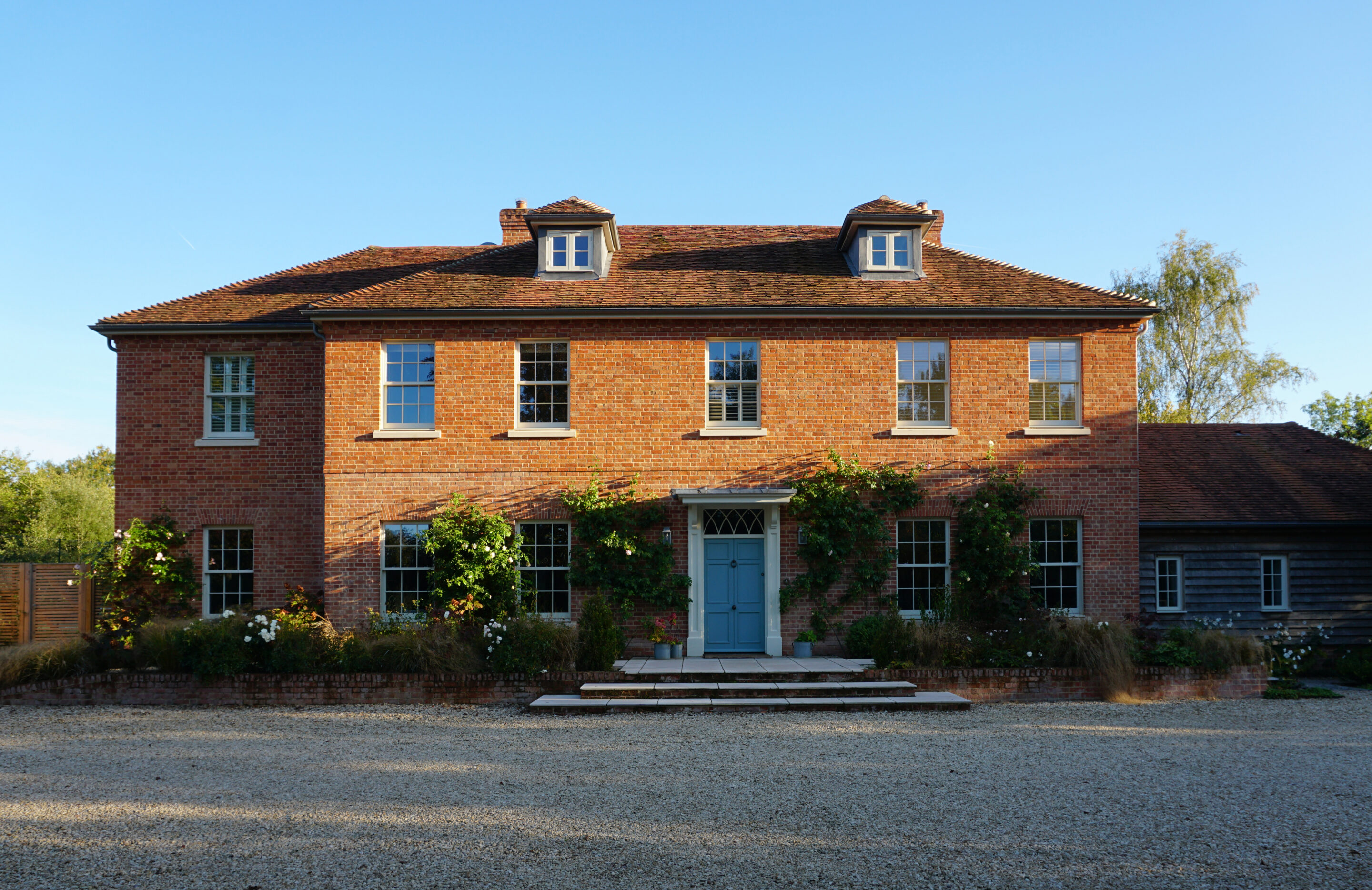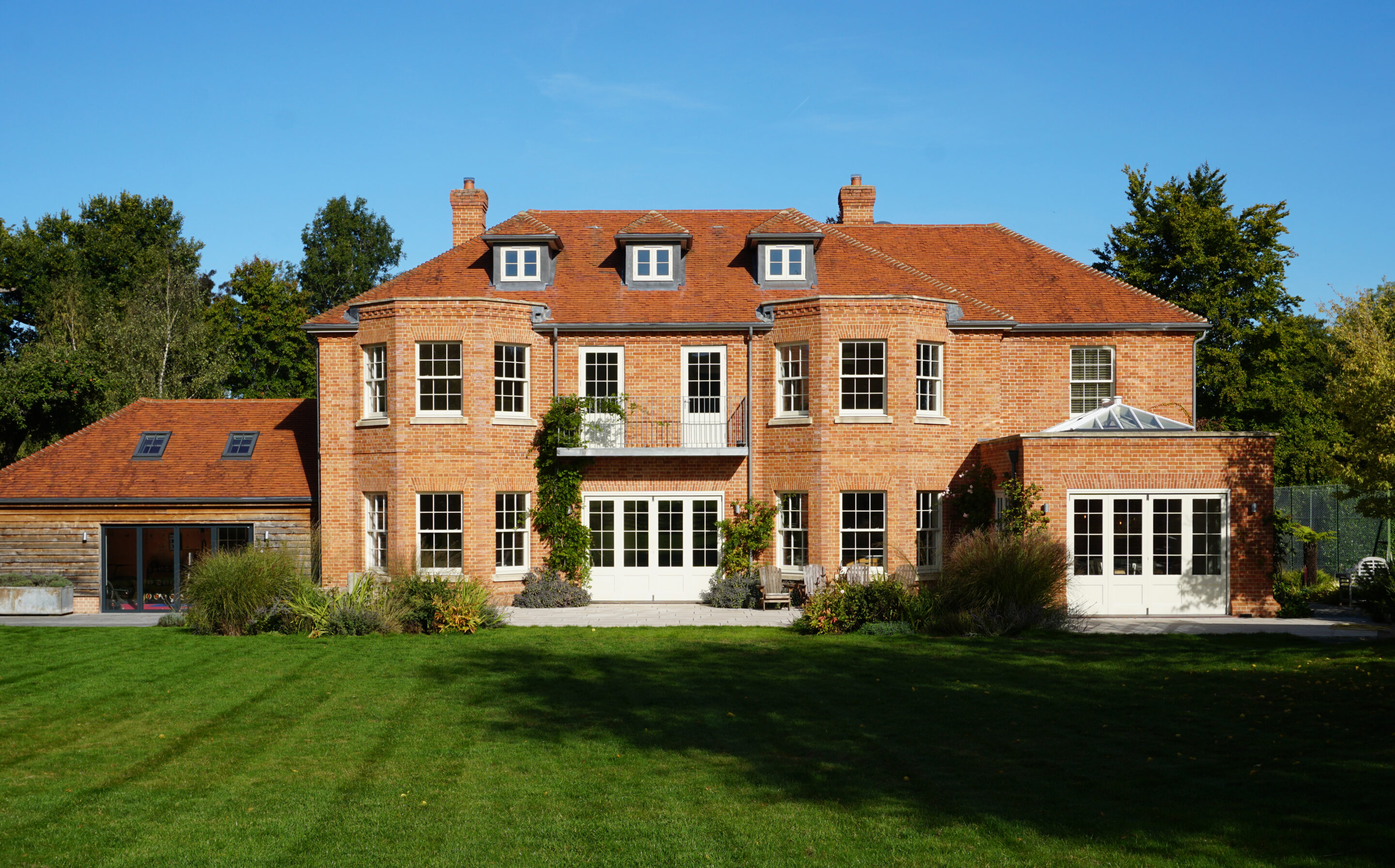 This impressive country home, set in 24-acre grounds in the heart of Berkshire, stands out for its classic Georgian-style facades, made from a bespoke blend of Northcot handmade brick in soft red-orange tones.
