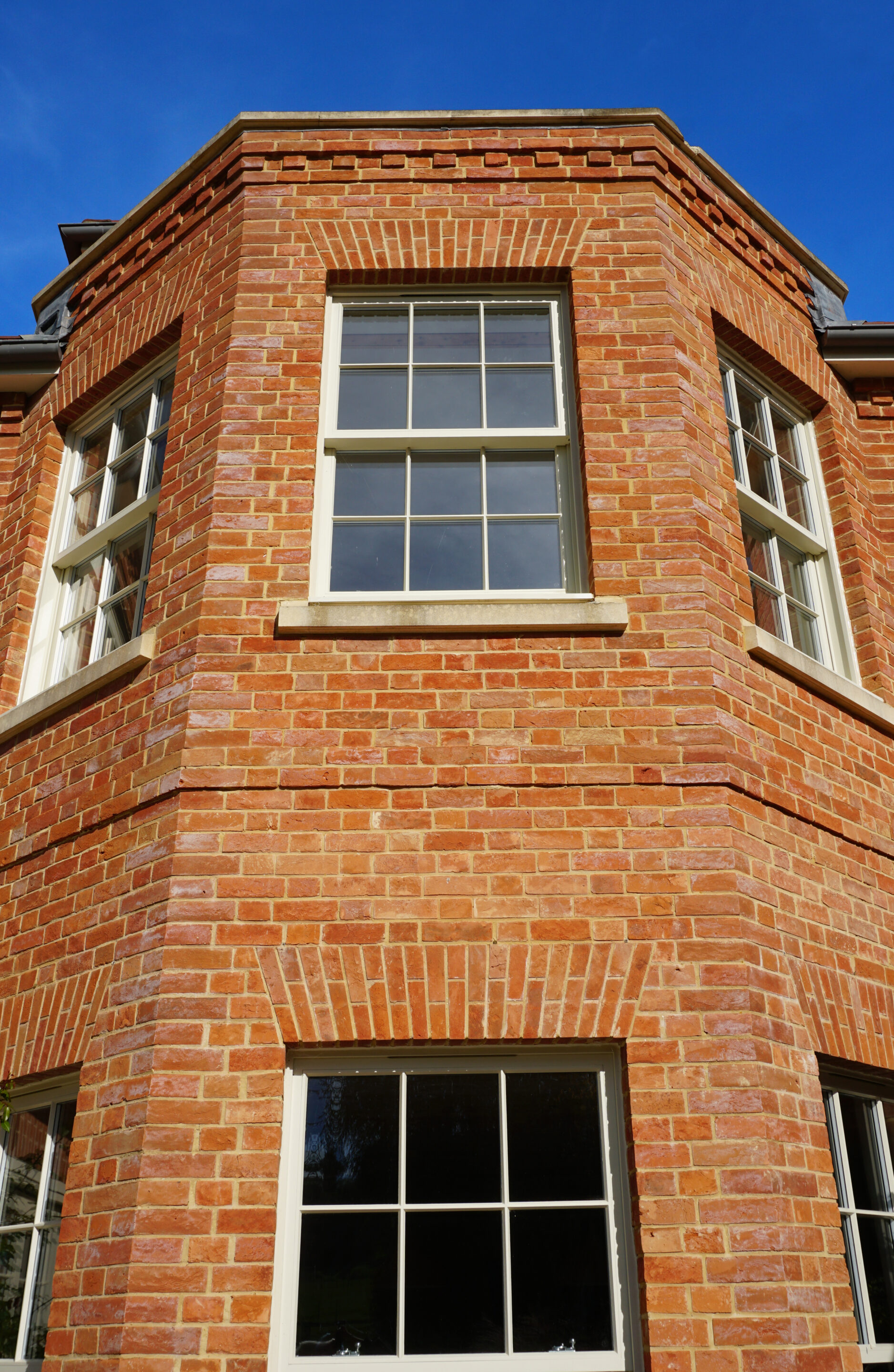 Approximately 25,000 handmade bricks and 1,000 matching specials were supplied in a bespoke blend of 70% Lyneham Red and 30% Plumsted Antique, which are gently sand-faced with a light creasing. These were then laid in a traditional Flemish bond.