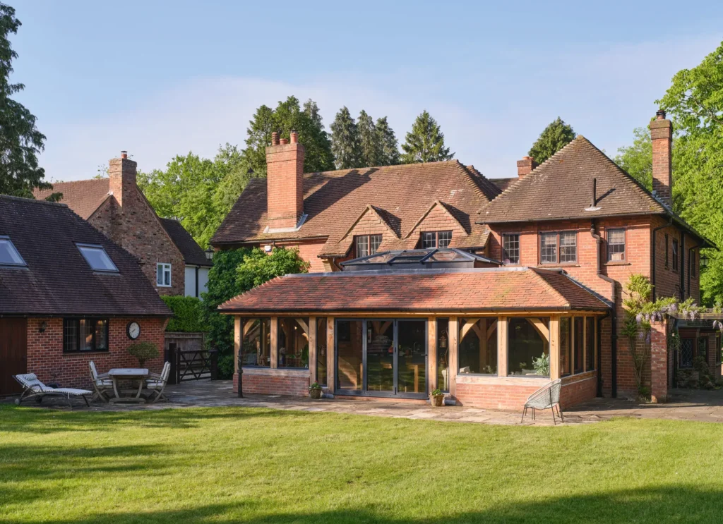 This striking oak extension, designed by Oakwrights, is packed with character, complementing this Arts & Crafts-style home.