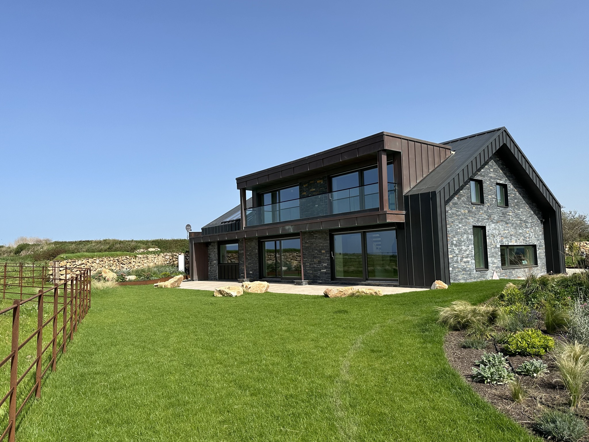 Designed to respond to its exposed setting, Ebron ha Mòr combines strong, contemporary form with materials chosen for durability and efficiency. Built using the R-Wall ICF system, the home benefits from a solid concrete core wrapped in high-performance, closed-cell insulation, creating a structure that is exceptionally strong, naturally airtight, and highly resistant to the elements. This makes it ideally suited to challenging coastal and rural environments.