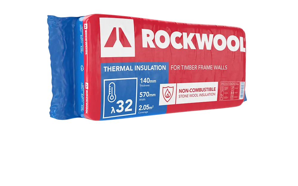 ROCKWOOL Thermal Frame Slab 32 has been engineered as a semi-rigid insulation slab to provide a friction fit between the studwork of timber frame walls. Saving time on installation and reducing waste, the friction fit helps to support performance by avoiding thermal bridging and gaps in the structure. Even as the timber studs continue to dry out and contract over time, the Thermal Frame Slab 32 will stay firmly in place.