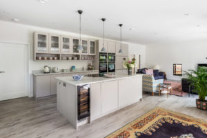 Potential problems from planning to building challenges were dealt with by Scandia-Hus as the main contractor, and so the journey for Penny and Tony was an easy and relatively stress-free one. The resulting property is magnificently modern with three floors and four bedrooms. The grey and white tones of the exterior finish beautifully contrast with the vivid countryside greens encircling it, and the sliding doors that connect the open plan living space to the garden help to create an indoor/outdoor flowing feel.