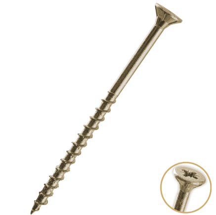 The screws feature a recessed double countersunk head, allowing them to sit neatly and securely once installed. Sharp milling points and an oblique-angle gash tip help the screw start cleanly and drive smoothly through materials such as hardwood, MDF, decking, plastics, and sheet metal. The zinc and yellow waxed coating offers added resistance to corrosion while helping reduce friction during installation.
