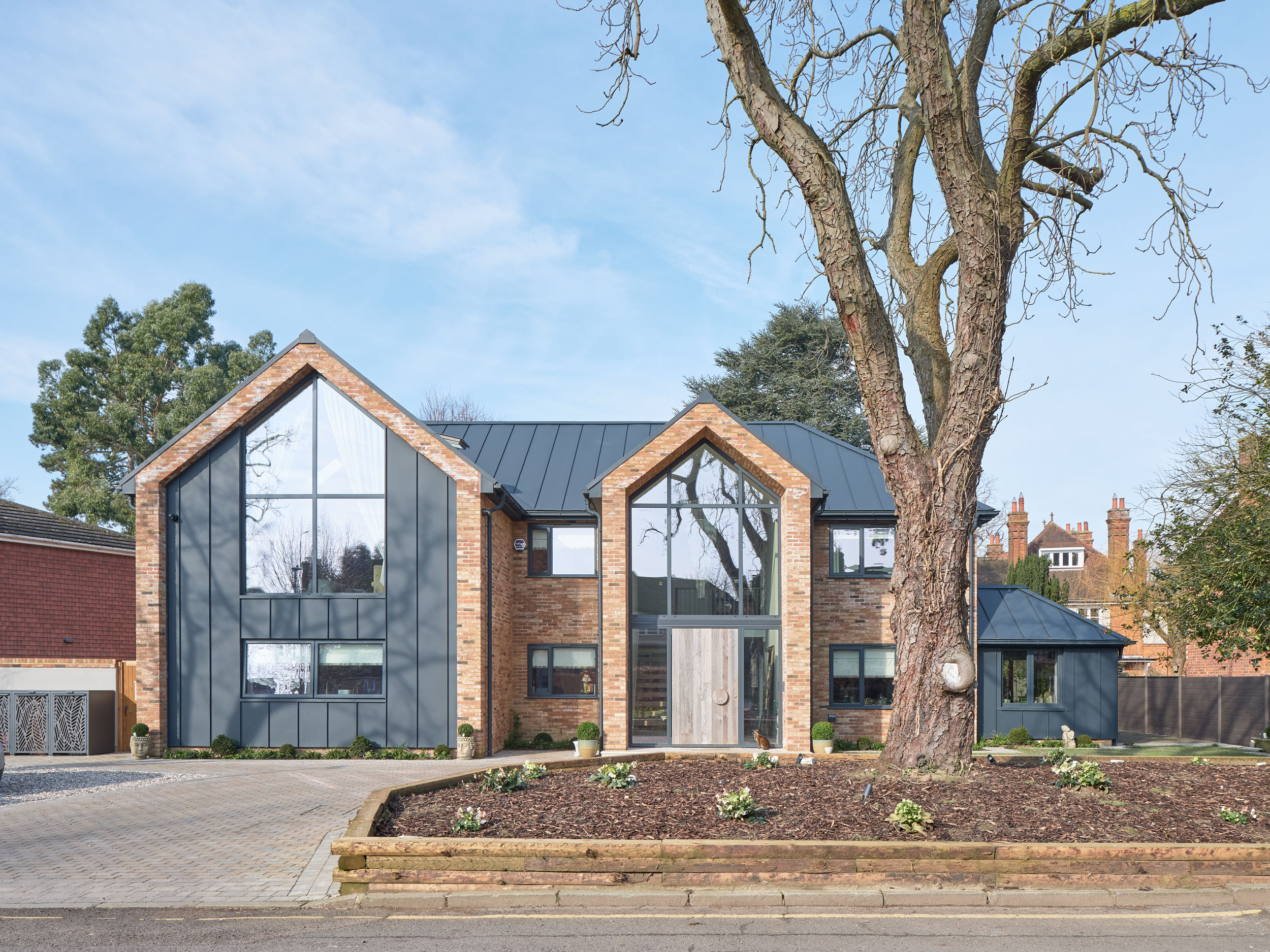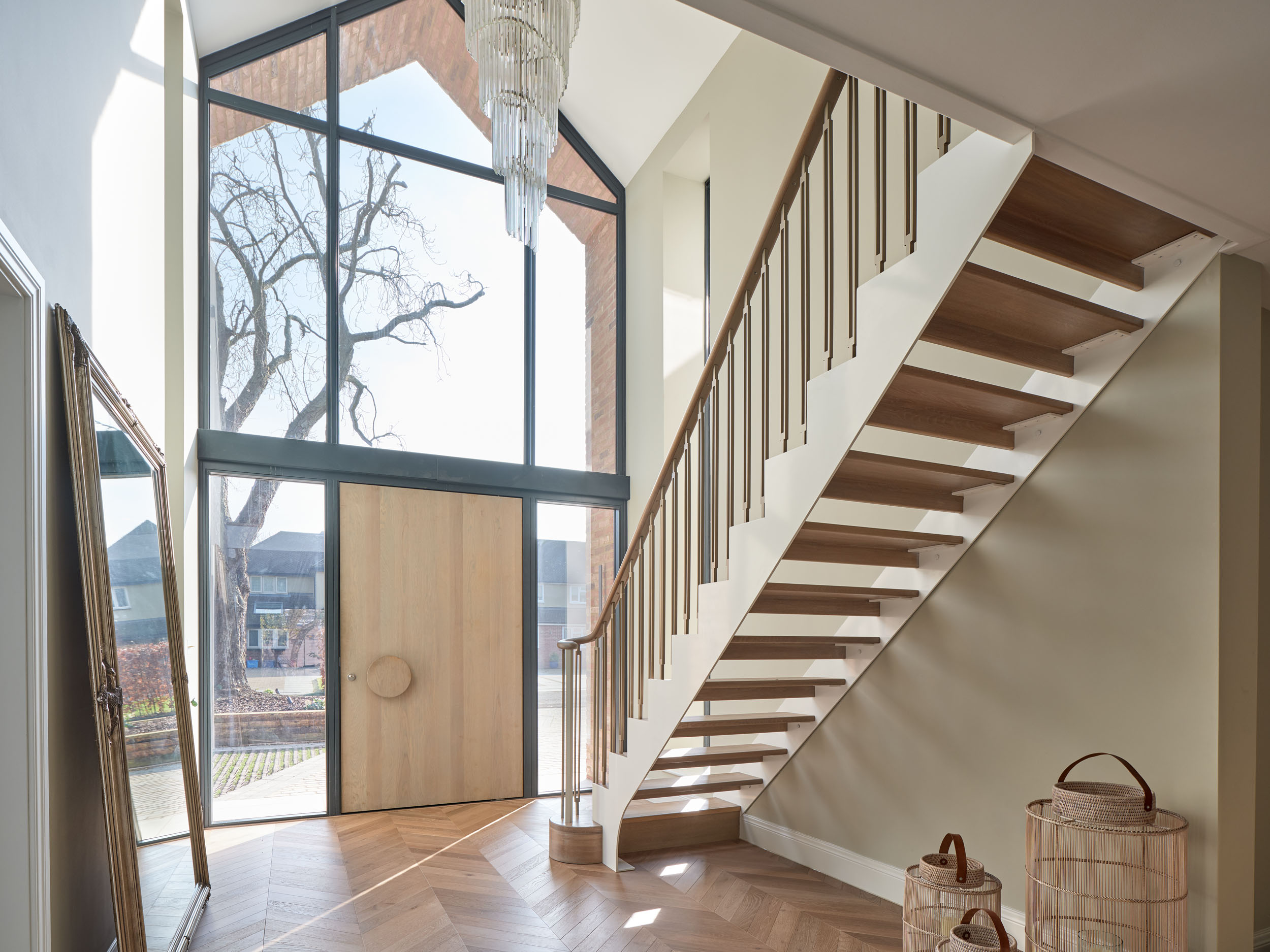 “We wanted [the entrance] to feel spacious and light: somewhere the whole family can get their shoes on at once!” she says, “The door is the icing on the cake. It perfectly encapsulates the urban farmhouse brief. Rustic and reclaimed on the outside and, by contrast, super slick on the inside, almost mirroring the contrast of the warm brick and the zinc cladding.”
