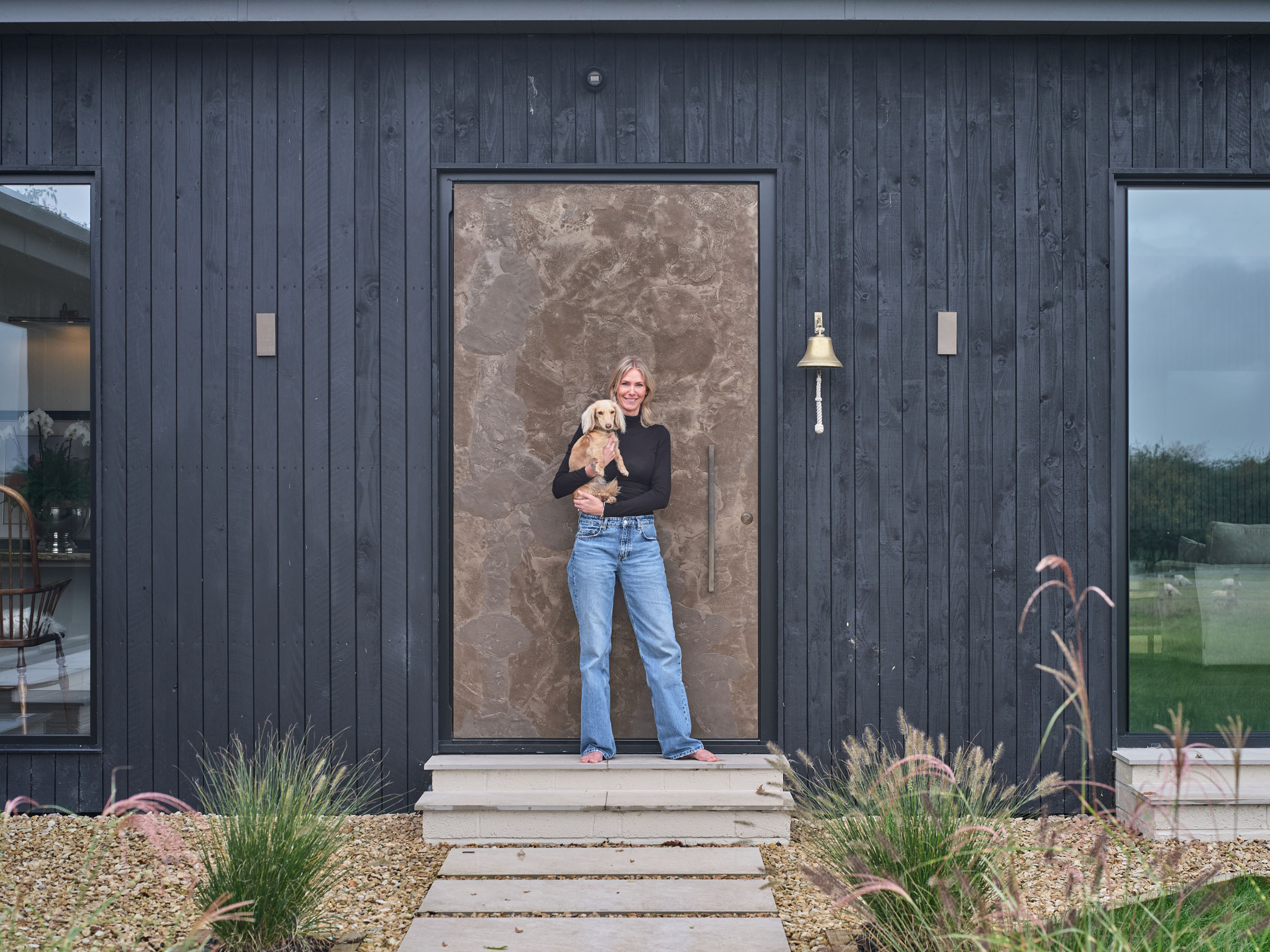 “We decided early on that we would need a large front door to be in keeping with the height of the many sets of sliding doors in the building. Through my own research, I found Urban Front. We were living just ten minutes away, so we decided to visit the showroom. We were impressed with the range available, and I quickly decided that I wanted the bronze finish. The barn’s exterior is so dark with black wood cladding and a dark grey zinc roof, and I knew the bronze would lift the whole look. I chose black for the internal side of the door. We have a neutral paint palette of two colours throughout the entire interior: Farrow & Ball’s Skimming Stone and Oxford Stone but but we have black wooden flooring, so I thought the black door would blend seamlessly, which it does.