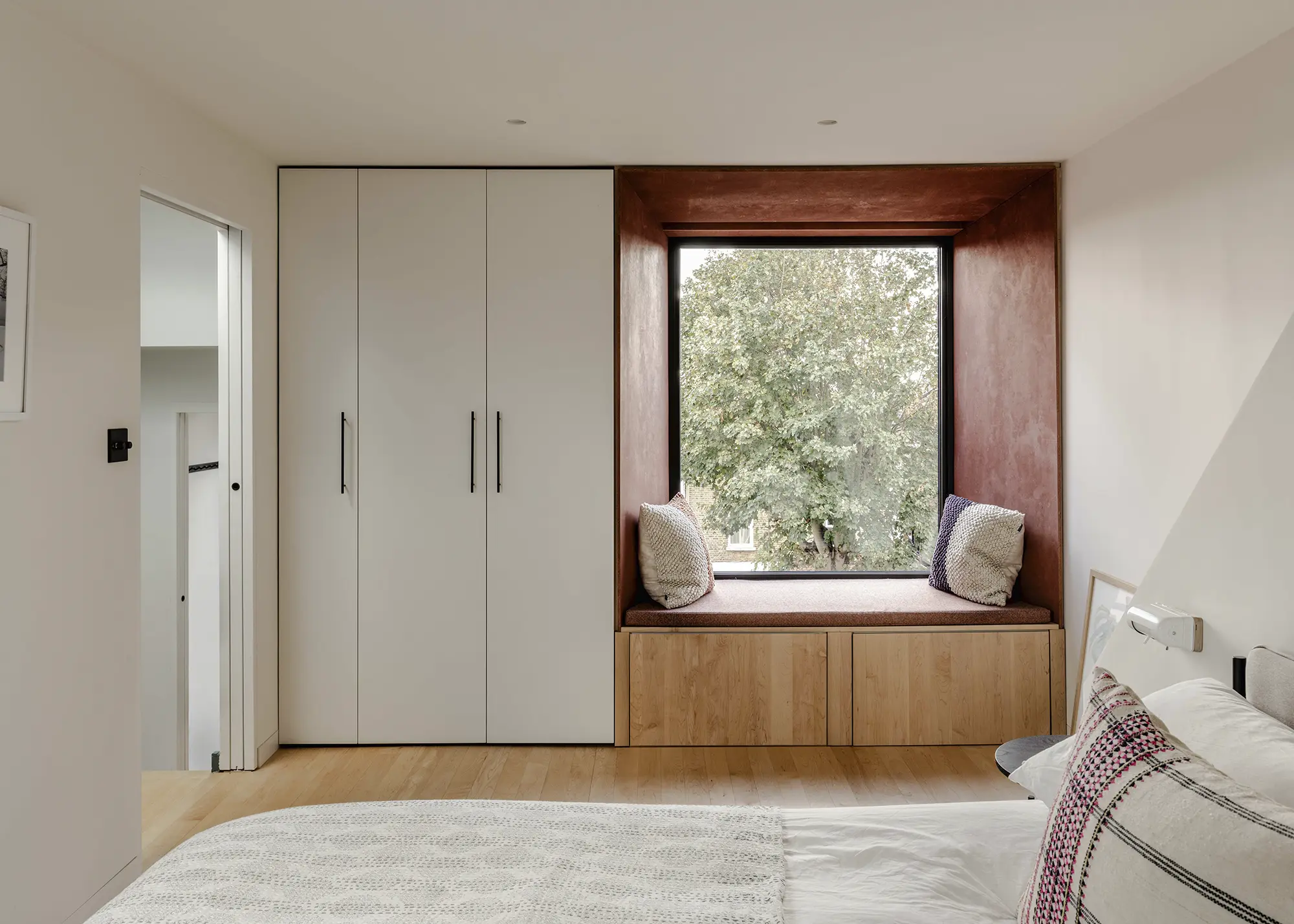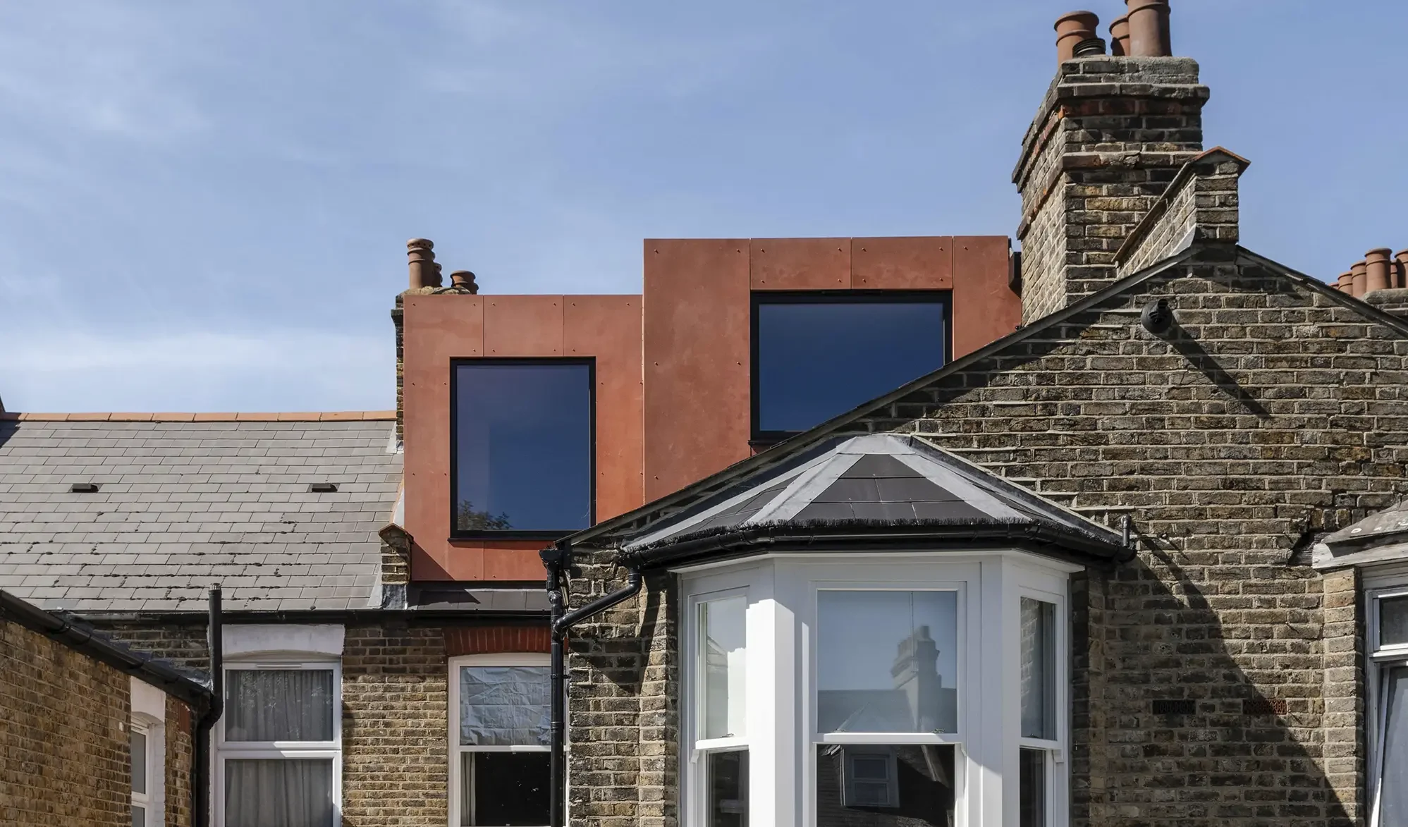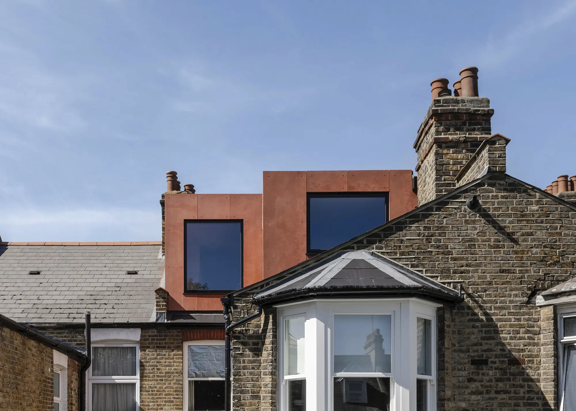 CASE STUDY Modern dormer loft conversion projectCurtaz Studio Architects completely reimagined this Victorian terraced house in north London, in response to a very particular client brief. The owners Joe and Steph were keen on adding rooms for their young children, while simultaneously creating a space for relaxation and retreat within the busy family home. The solution came in the form of a dormer loft conversion suite, which comprises a small studio/gym, shower room and master bedroom, flooded with natural light throughout the day. A freestanding bath within the bedroom was carefully angled to capture the key southerly view over rooftops, too. The dormer loft conversion features internal reveals (increasing the angle of visibility from within the space), and an upholstered window seat for reading, or just taking in the view. Terracotta pigmented panels were used on the exterior to reference the red clay/cement tiles of surrounding roofs, copings and chimney pots. The panels are then repeated internally in the tapered surfaces. Photos: French + Tye |