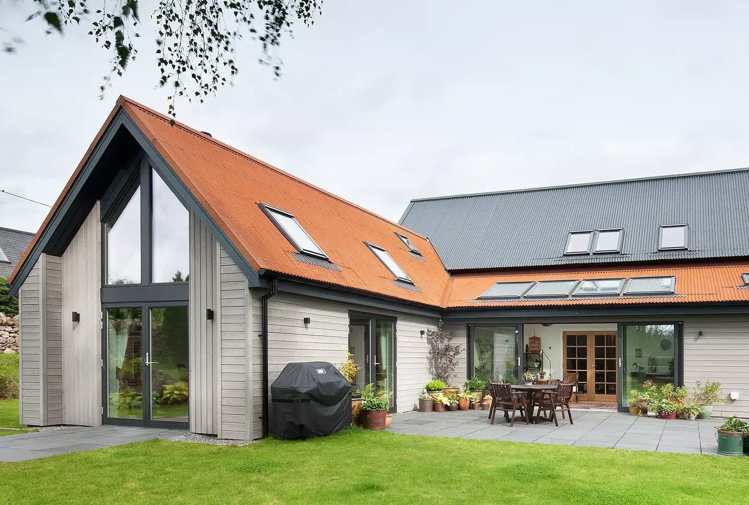 Jim and Barbara Hewson self built this modern timber frame home in a section of their steading’s garden after struggling to find a new home elsewhere. The striking timber home features a unique corrugated Corten roof, which helps the build to remain in keeping with the surroundings while offering a durable covering. Photo: David Barbour