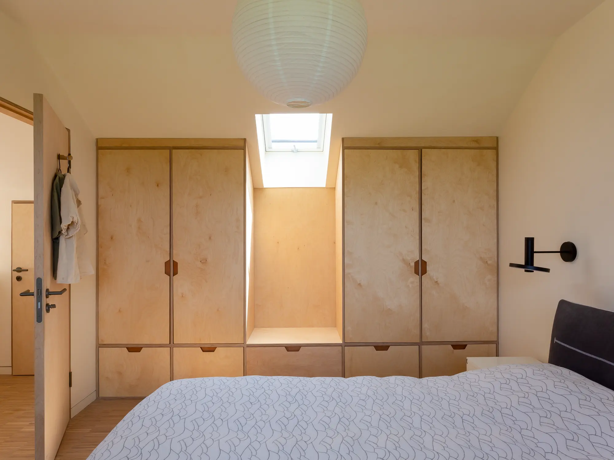 “I contacted the carpenter who had done that staircase and he completed mine in a couple of weekends,” she says. “The stair rail is just some wood I had lying around that I had turned.” The heavy birch ply doors have been finished with contemporary handles, which Carolyn colour sprayed herself, and she saved money by purchasing an ex-display kitchen. The external blind was the last thing to be fitted. “It’s the same colour as the internal blinds, which you have to have in a Passivhaus to help prevent it from overheating,” says Carolyn.