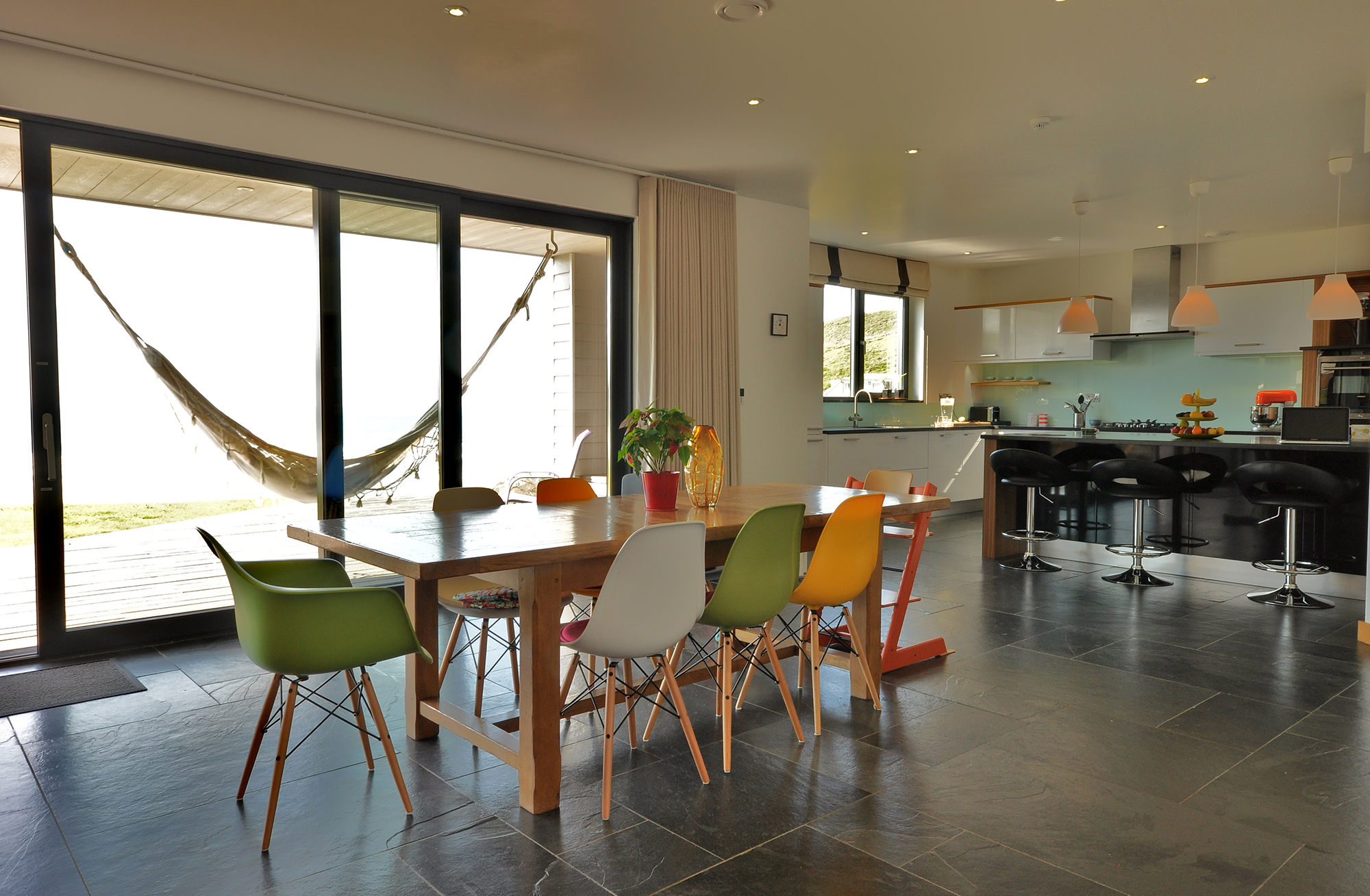 Eventually, with the guidance of Ian Sawle from M&E Compliance, he settled on a closed-loop boiler system accompanied by solar thermal panels, which extract the warmth via heat exchangers within a storage tank. “Size was an issue,” says Dan. “This house can take 10 or more people and if they all come off the beach and want a shower, they’d all need hot water. So it had to be high end.”
