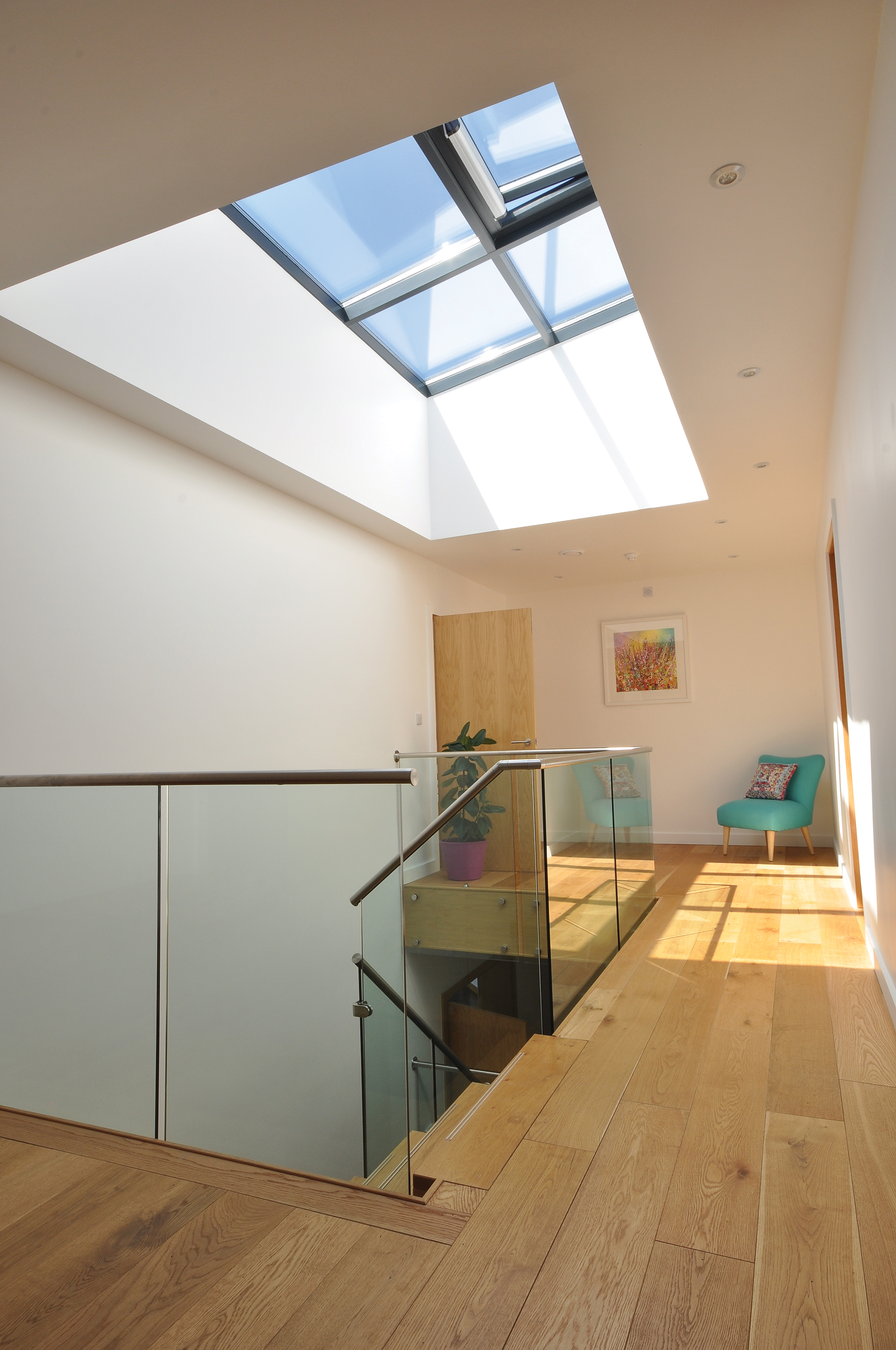 The roof features another glazed section, which spills light into the central stairwell. This also acts as a means to allow heat to escape. “The added insulation from the green roof, the solar gain from the glazing and the thermal mass of the retaining wall and floor mean that all the heat we get stays in,” says Dan, “but it does get very hot in summer.”
