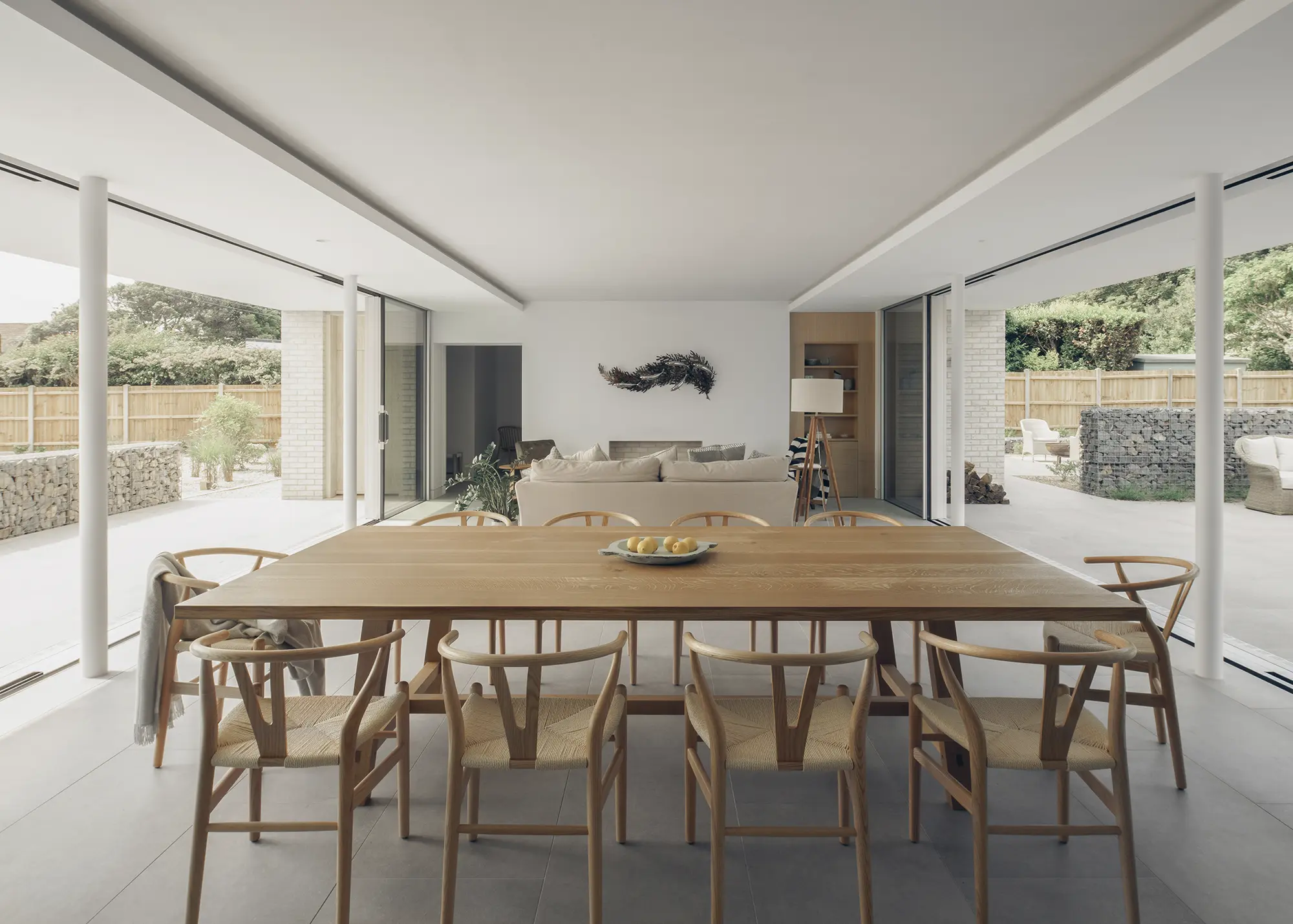 The open-plan living-diner area makes for a sociable home. The new build is perfect for entertaining, with plenty of space, light and a great connection with the garden