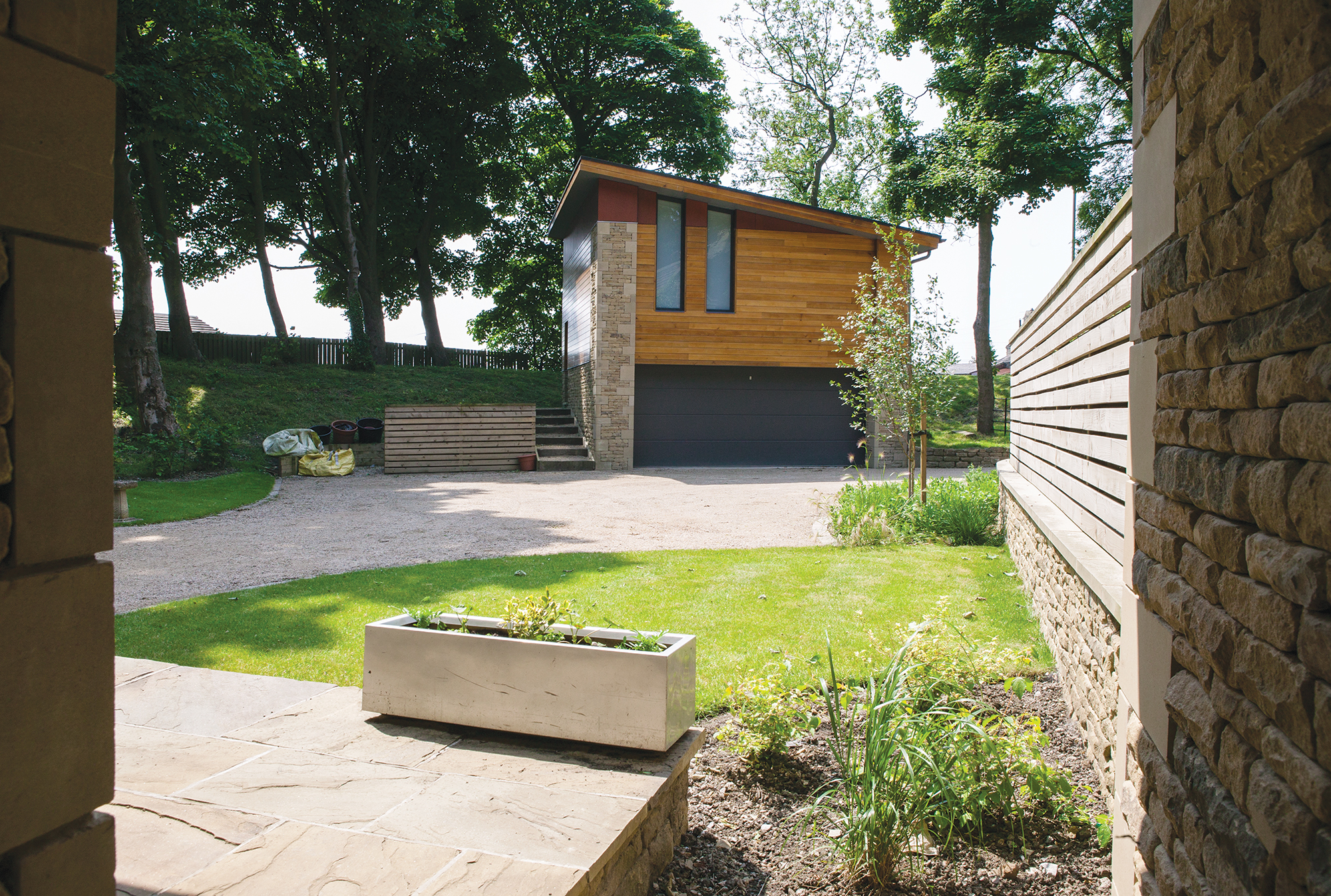 The twin concrete block cavity walls went up relatively quickly, but the six-inch stone outer skin, sourced from Johnsons quarry in nearby Huddersfield, took much longer. Each wall was fashioned and laid to emulate a traditional dry stone wall.