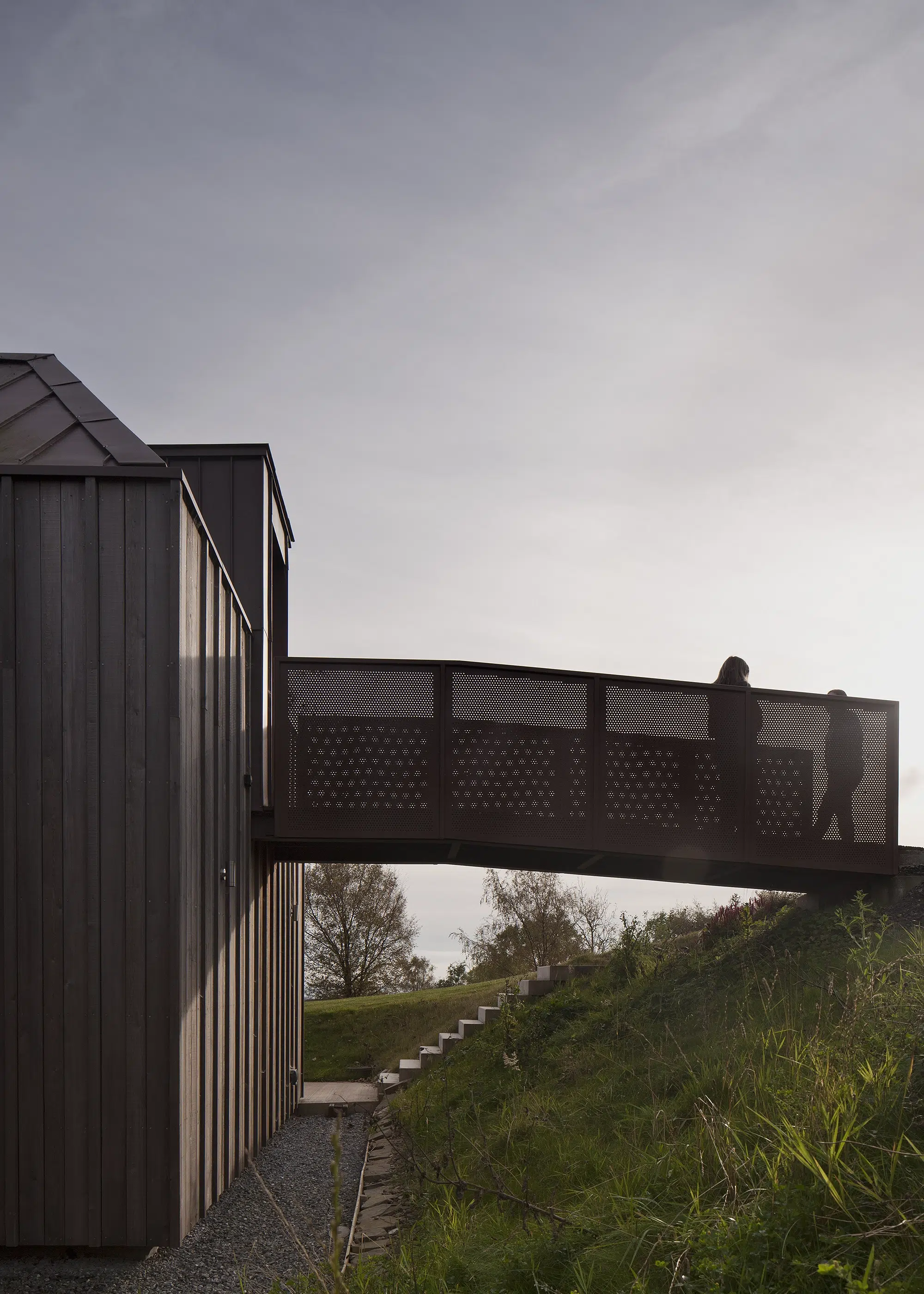The bridge outside leads to the upstairs lounge through a single glazed door