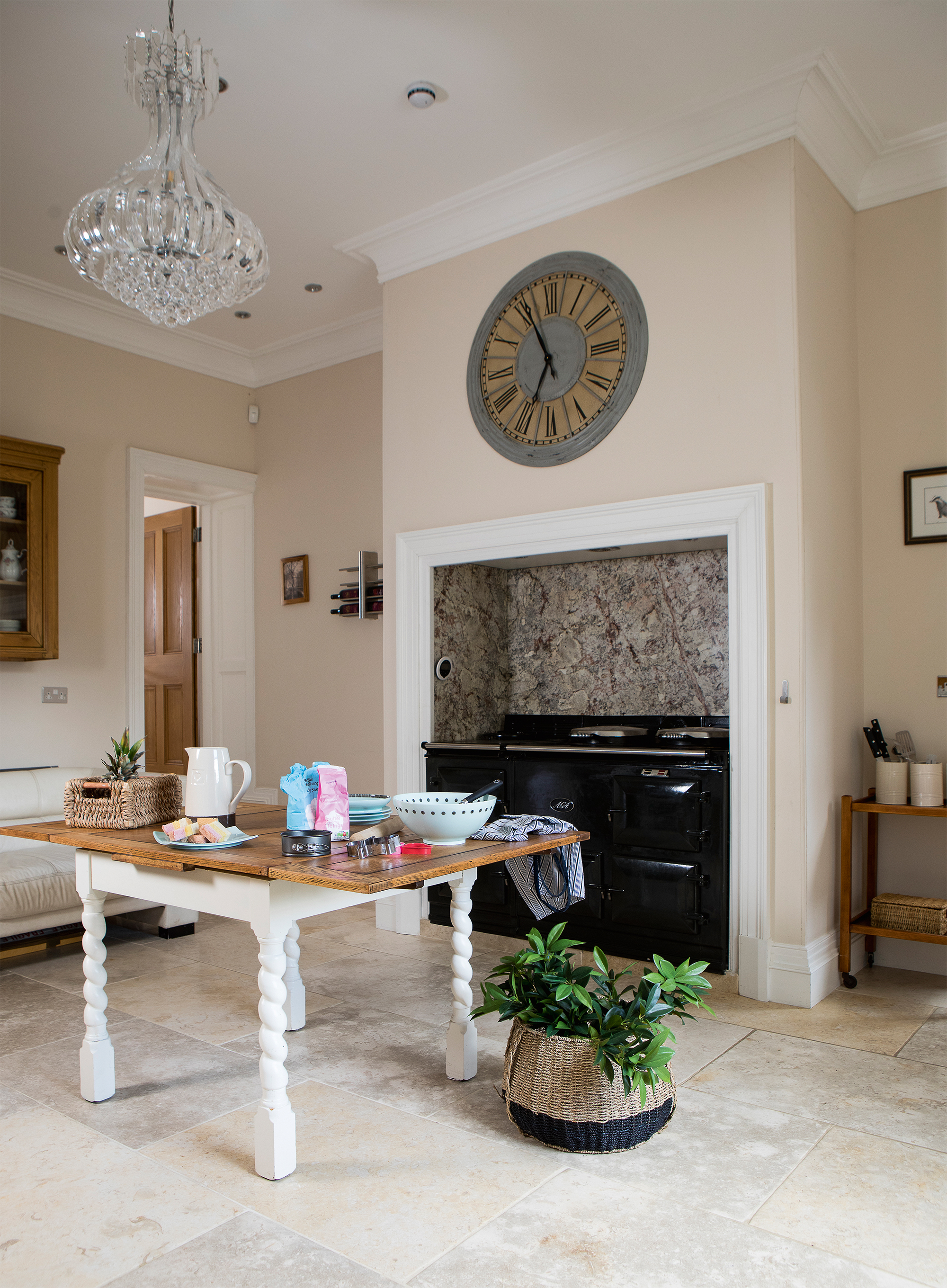 The kitchen is still a work in progress, but the Aga complements the character of the Georgian house