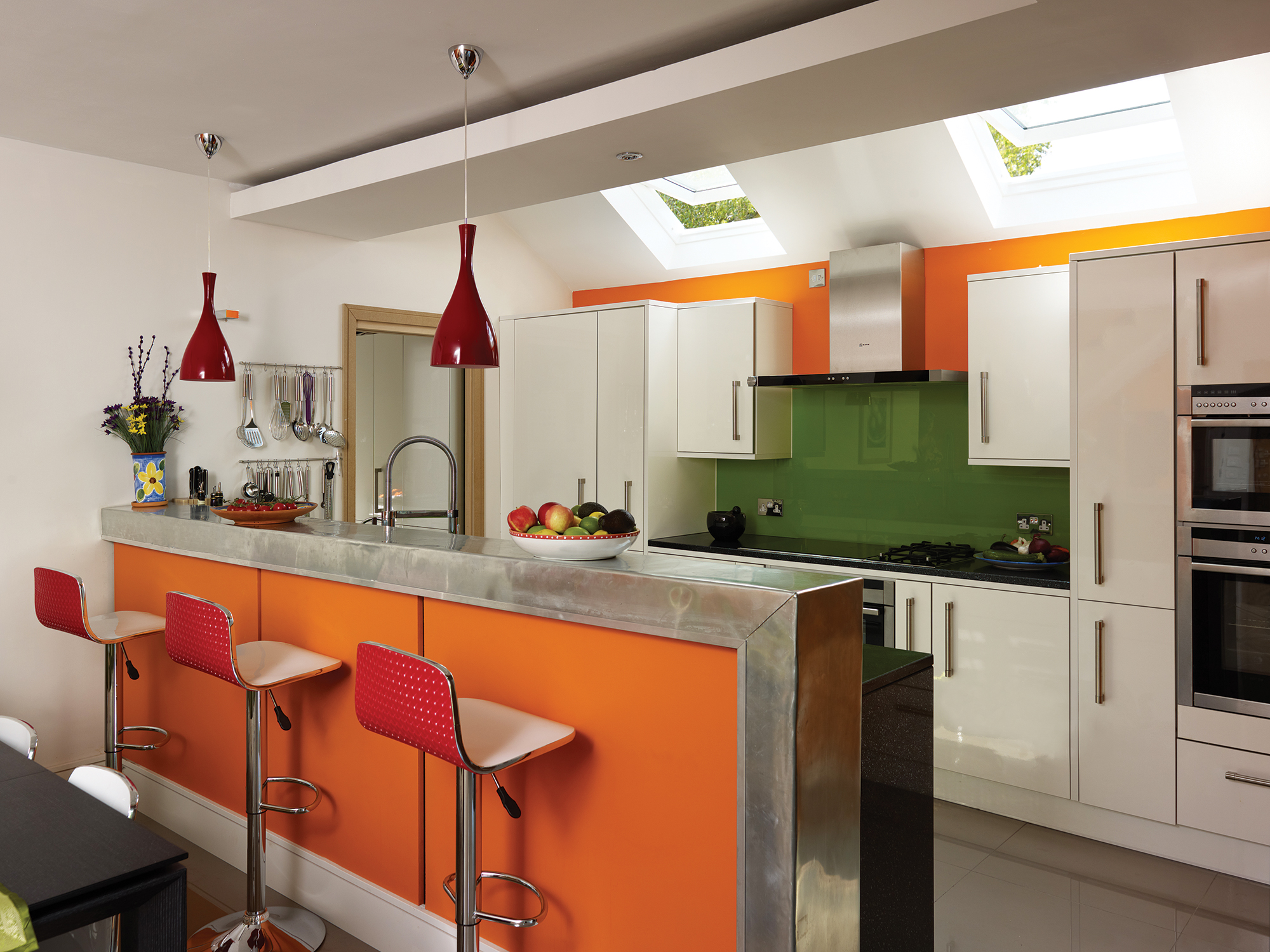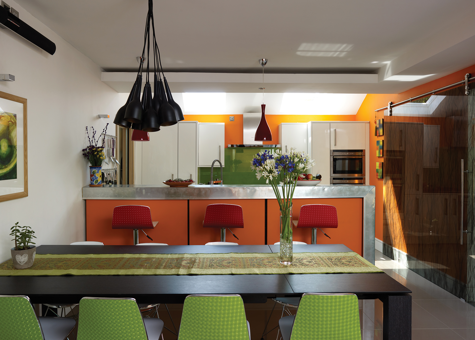 Stephen says a family holiday home in Lanzarote inspired him to design a vaulted ceiling. “We liked the feeling of space and light,” he says, “but it was also important to link the big living room with the dining room, because we enjoy entertaining.”