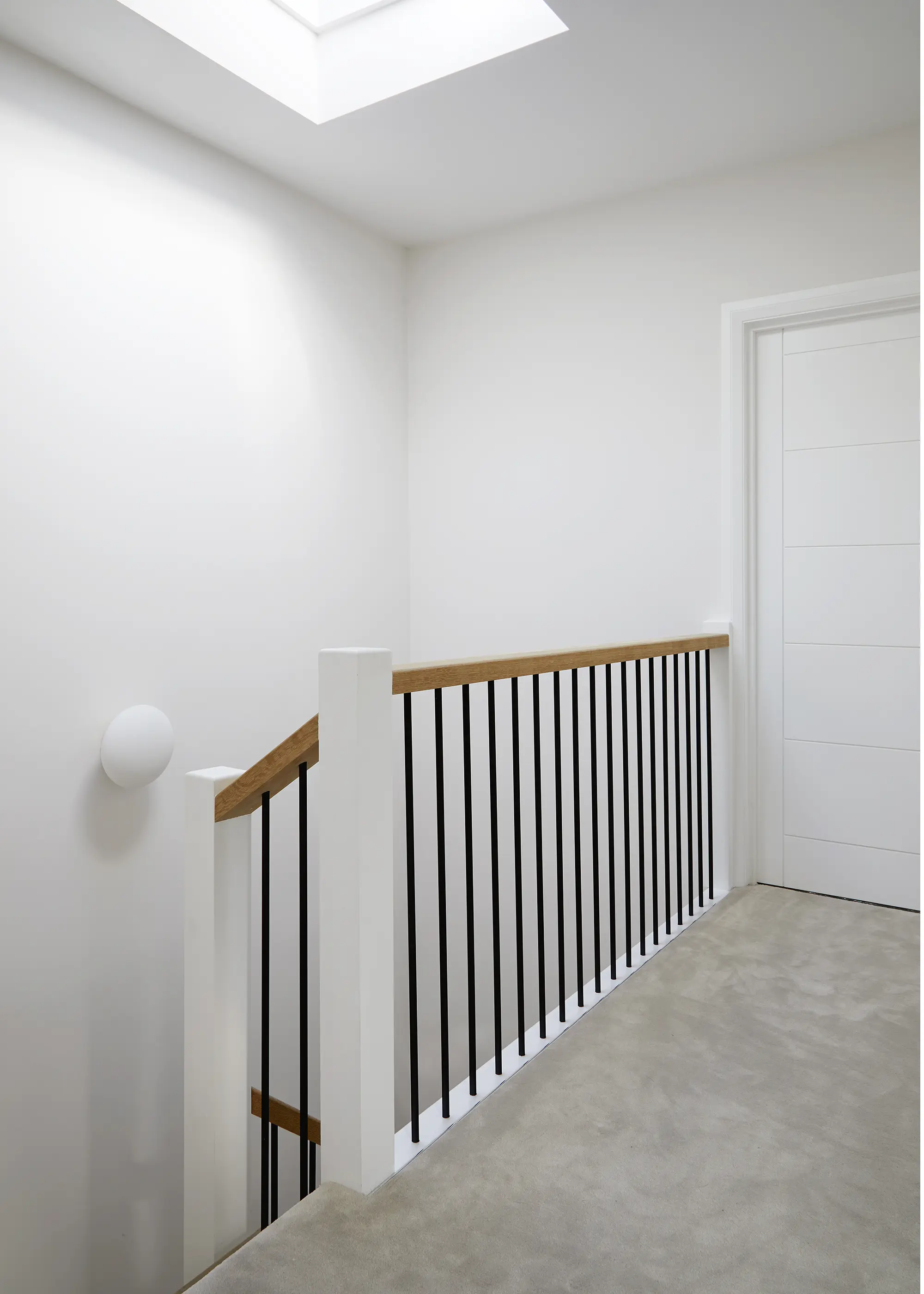 Oak treads and black balustrades adorn the staircase, which was redesigned with a different layout to increase space in the hallway