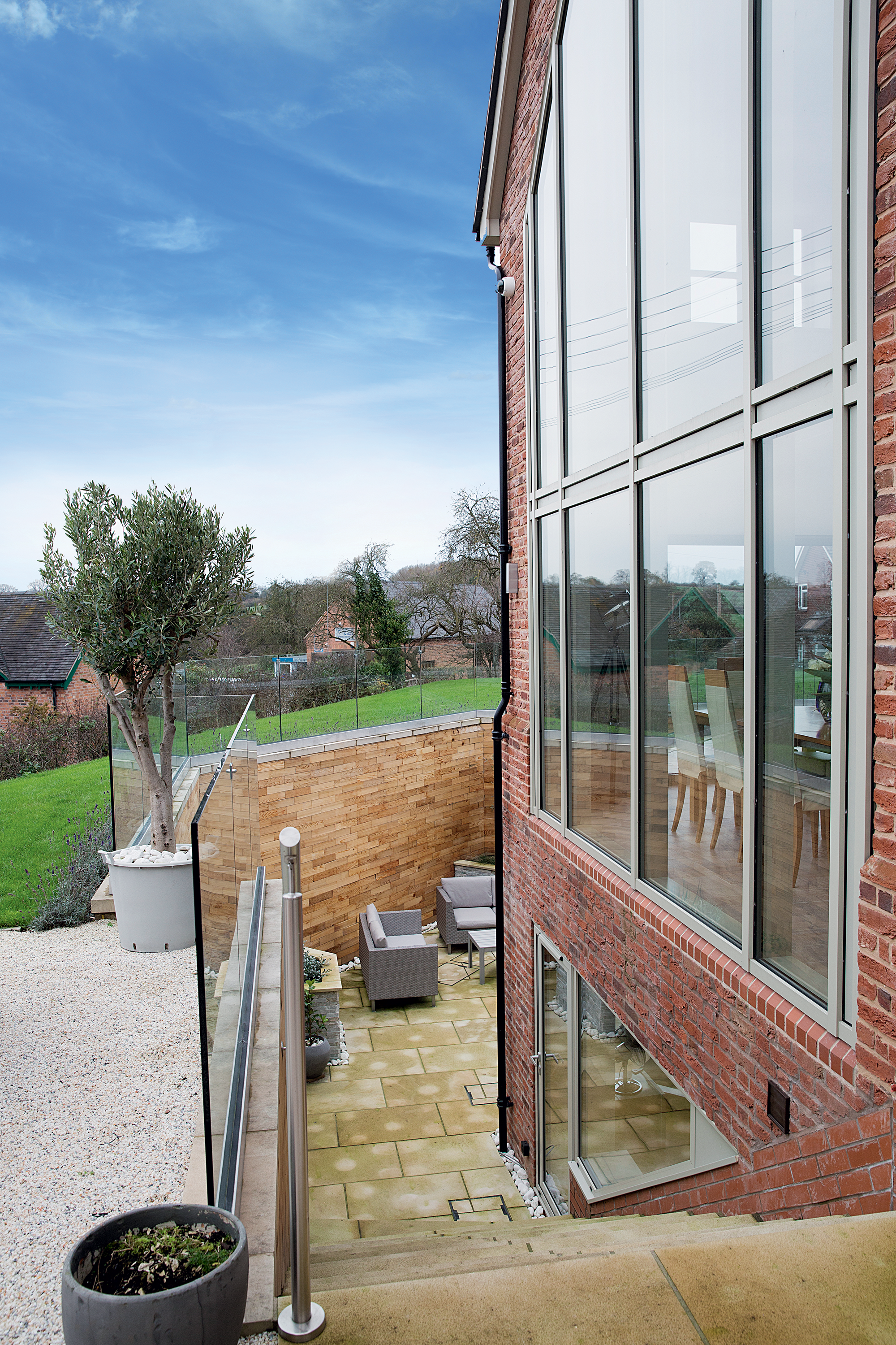 They envisaged an elevated terrace, sunken courtyard, double-height living areas and open-plan living on the ground floor. “We engaged with Staffordshire planning authority from the outset and they were very receptive to our ideas,” says Jo. “We communicated with them right the way through the process and it took about four months to get the changes passed.”