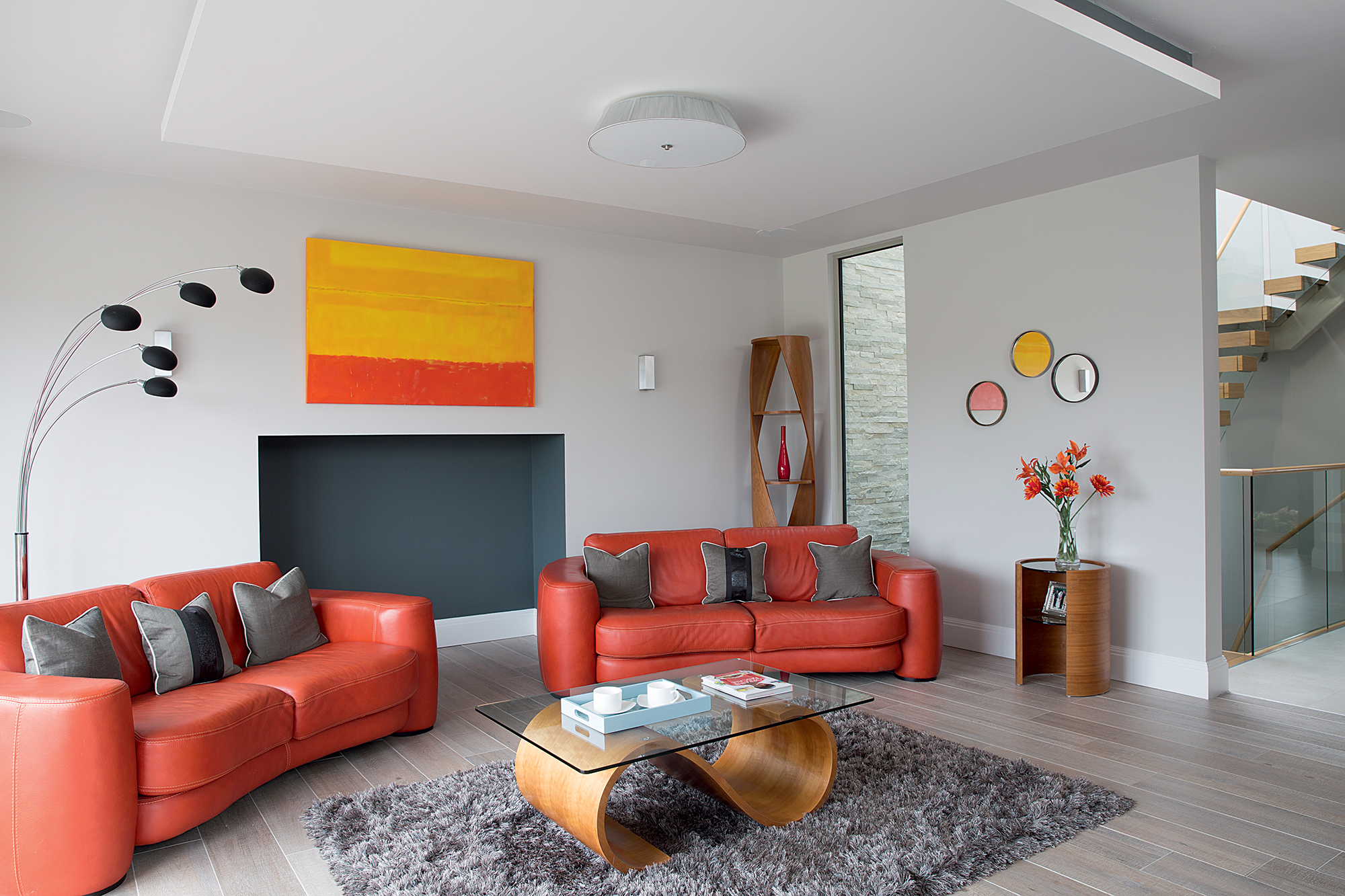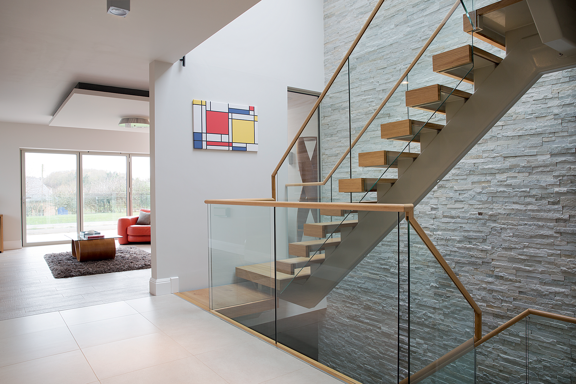 The huge gable-end window at the rear of the house is so big that the individual panes had to be specially made to withstand the wind in this relatively exposed location. “It was a big challenge getting the glazing produced,” says Wayne. “We didn’t want a support bar across the top of the triangle as we thought this would spoil the look. The extra strength glass has allowed us to achieve the effect we wanted.”