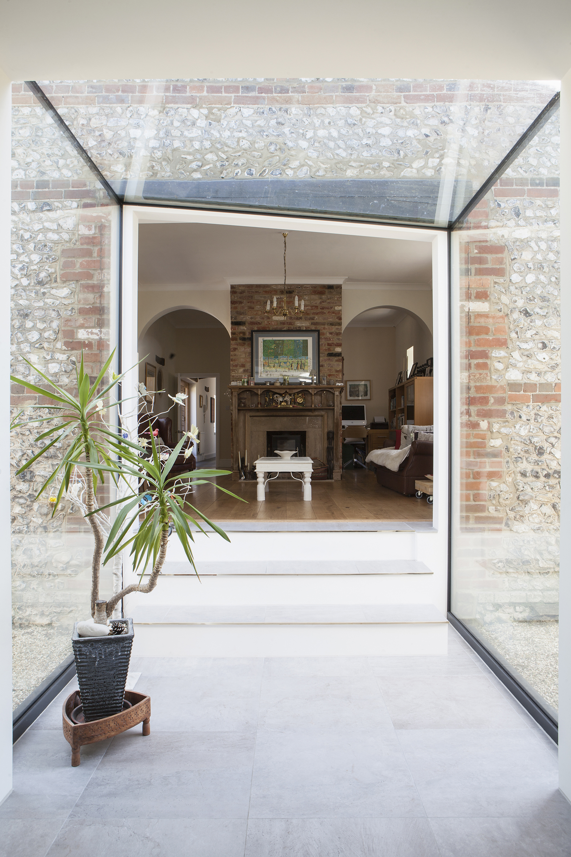 Adam came up with three design proposals, but after preliminary discussions with the planners, events took an interesting turn. “The council came up with the idea of knocking down the garage and building a contemporary extension in its place, connected to the house via a large glass link,” says Jonathan. “They didn’t want another brick and flint pastiche of the original barn.”