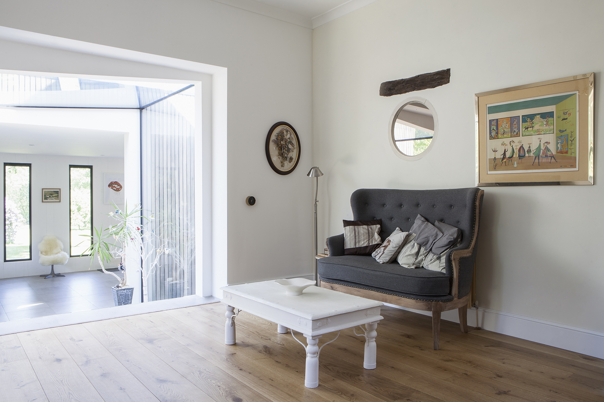 The structure was originally converted to residential accommodation in the early 1980s, and the Chambers are only the second family to live here. “The people who were here before obviously did something radical, in that they took this barn and made it into a home. We’ve continued the theme by adding a contemporary extension,” says Zahra.