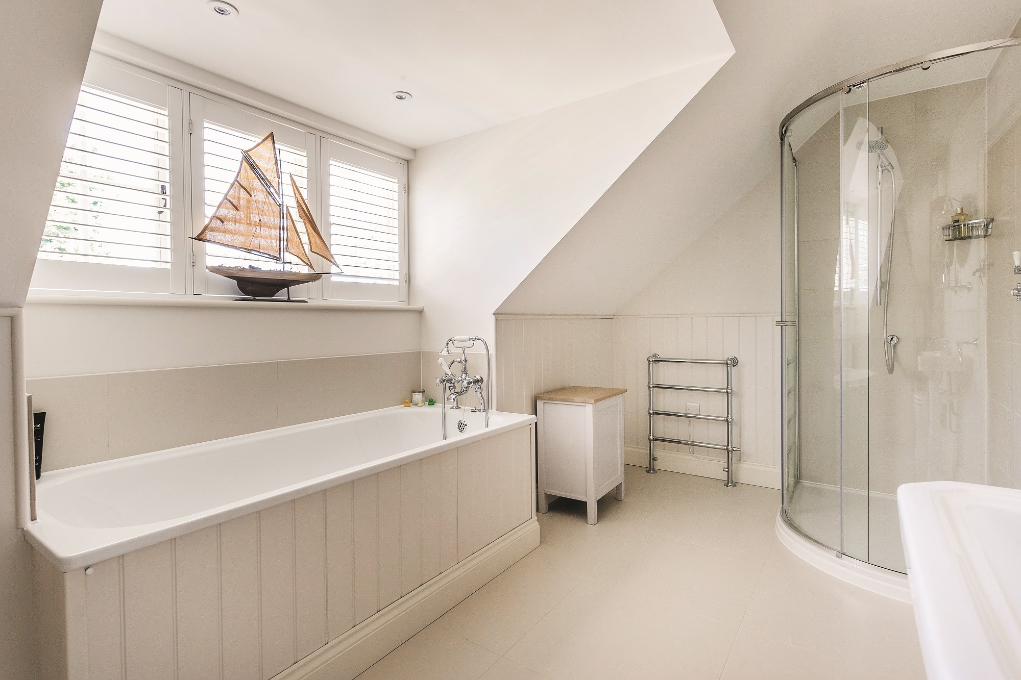 Featuring more of Sarah’s favourite timber panelling, the bathrooms throughout the house have been finished in a traditional style to re-create the feel of a characterful, period property