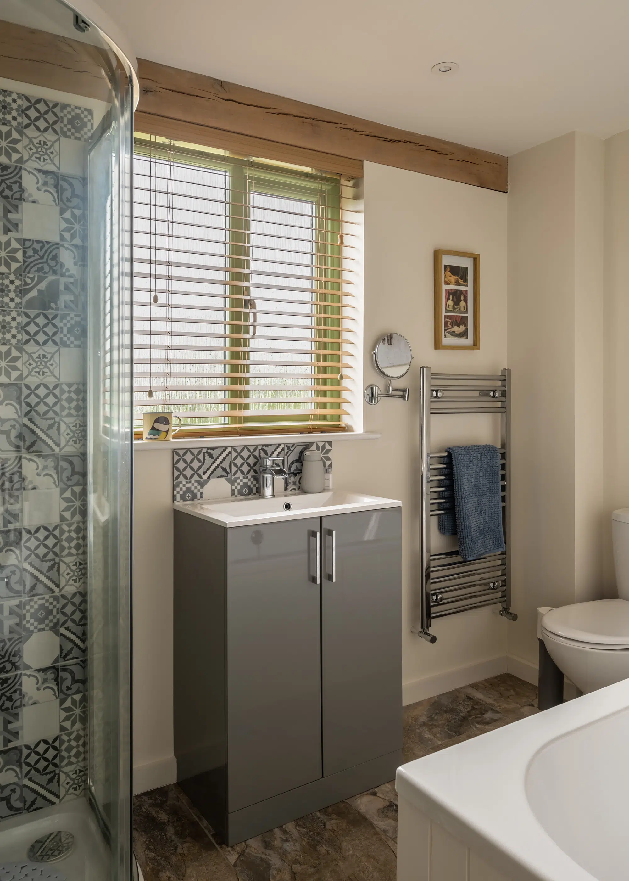 “Our designer created the upside-down layout with two A-frames on the upper floor for our open-plan kitchen-living-dining room,” says Peter. “We’ve no curtains up here so when a storm blows, it’s like standing on the bridge of a ship. We feel part of the countryside and see some lovely sunsets.”