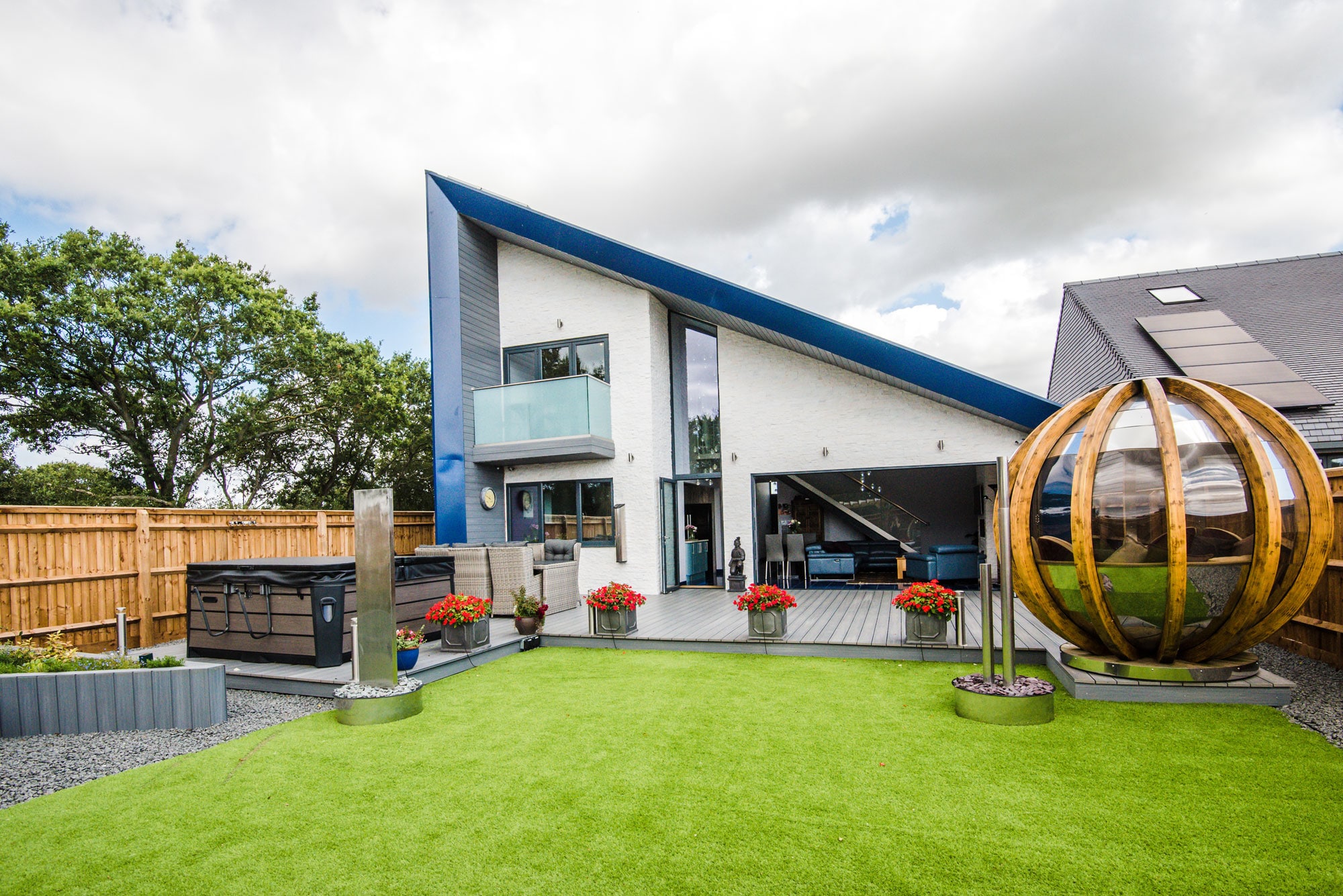 The house is also brimming with forward-thinking features to help the couple live here for years to come. Examples include zero thresholds between bifolds and garden, low-upkeep artificial lawn and raised borders that make for easy planting, complete with automated irrigation system.