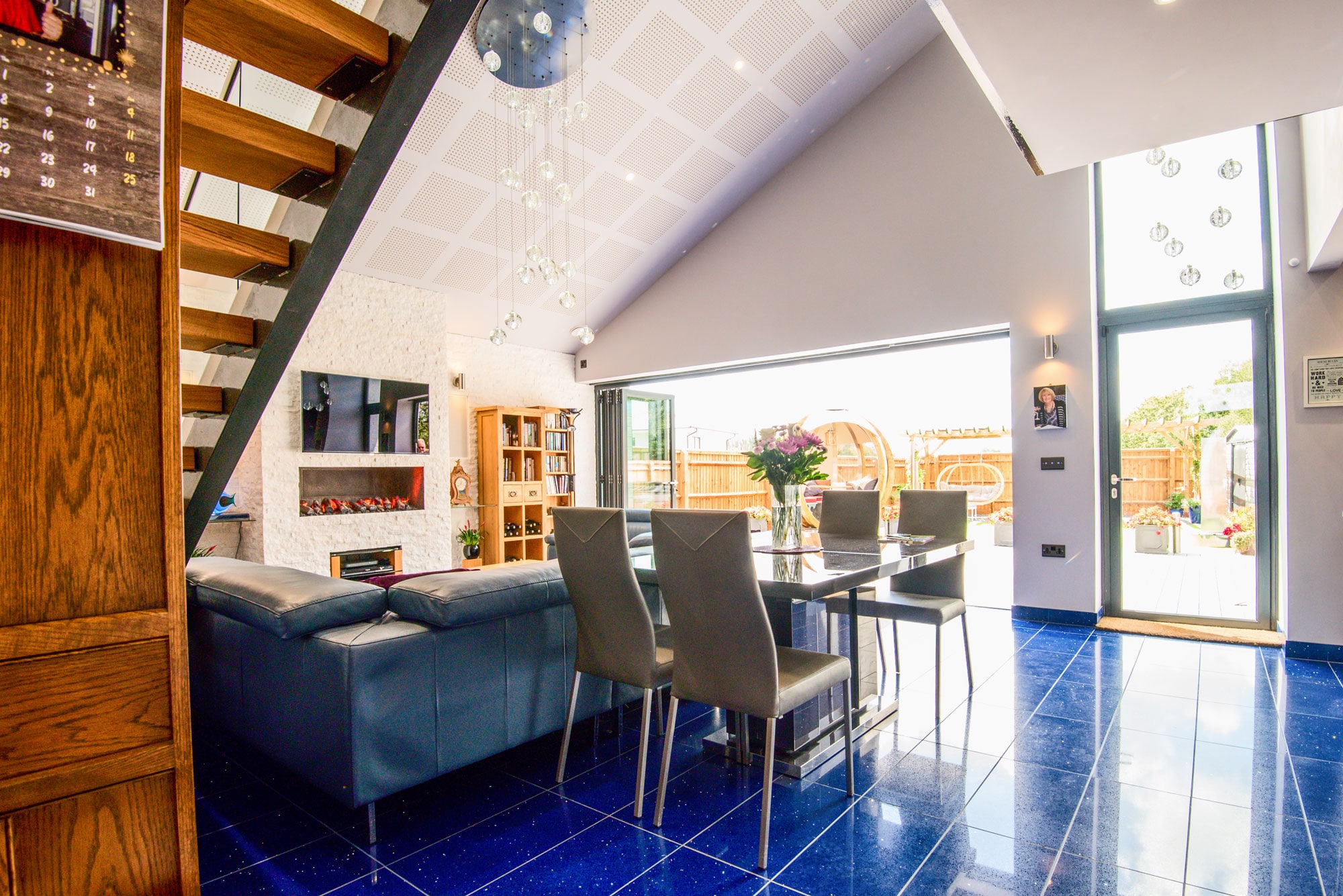 The new three-bedroom property is not huge, but it packs a lot in, including plenty of technological wizardry. Large spans of glazing and vaulted ceilings look striking, while an uninterrupted sight line from the front door through to the garden greatly enhances the sense of space.