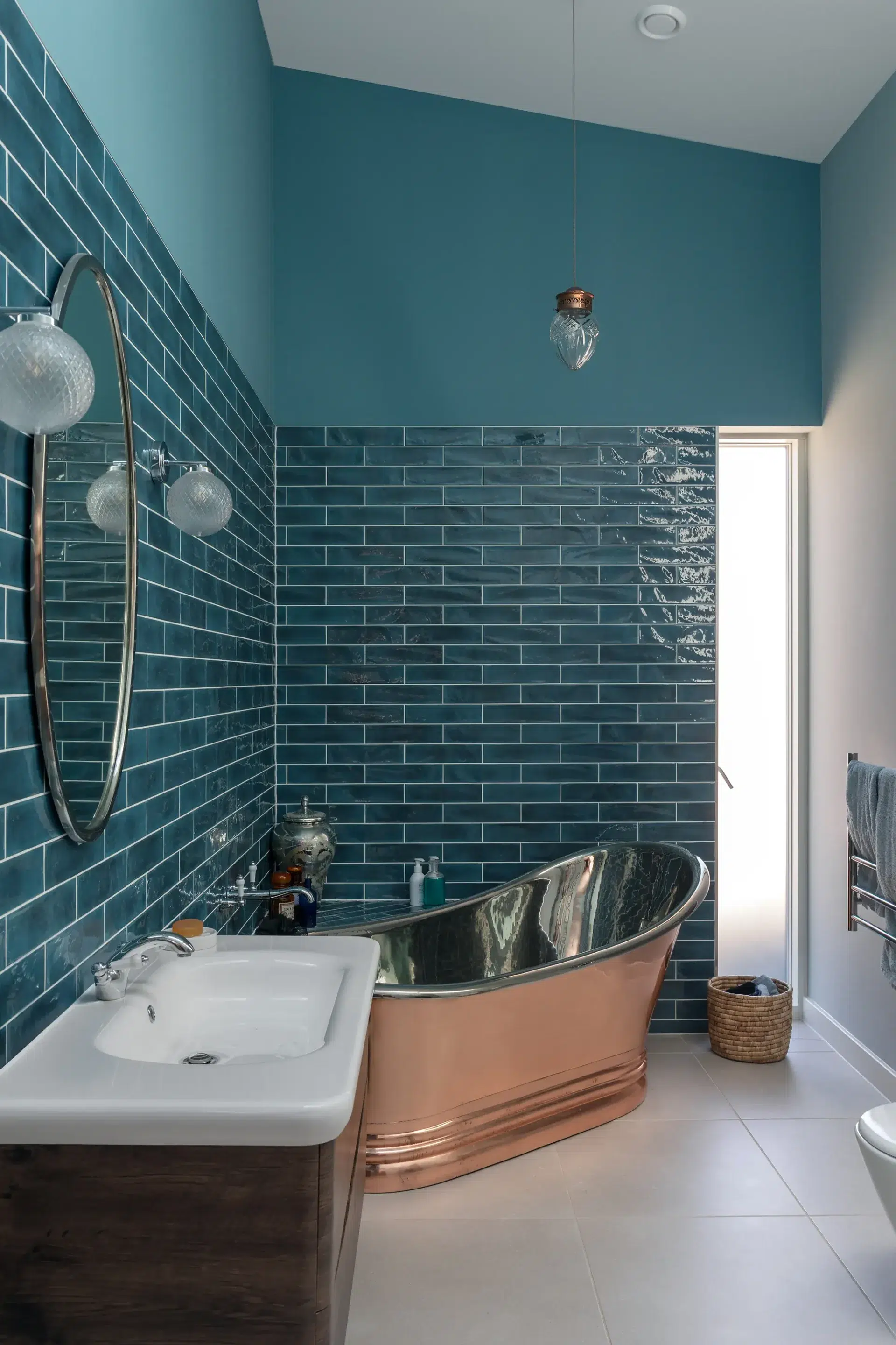 The airtight house is heated by an air source heat pump and underfloor heating (UFH), with the interiors remaining fresh thanks to a mechanical ventilation with heat recovery (MVHR) system. “I put all the piping in for the UFH myself really neatly – but then you have concrete poured on it so never see it! But I know it’s there,” says Martin. The rooms are filled with natural light with a mix of colourful walls, white bright spaces and natural wood finishes. There is smart home technology automating the lights, security cameras and entrance gate – all controlled via Apple Home Kit.