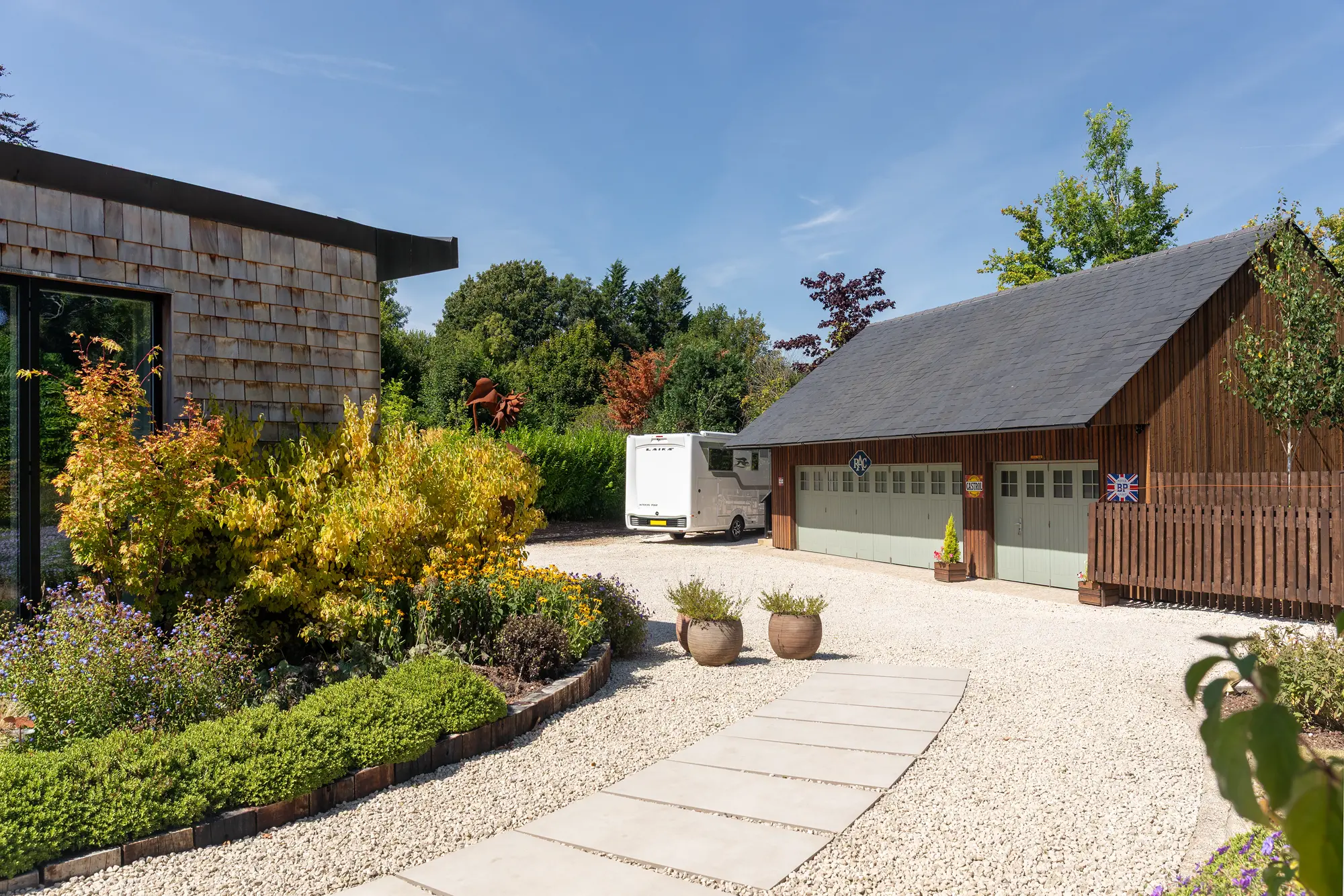 For car enthusiast Martin, building a good-sized garage was another important part of the project. “You can’t generally get a garage this size unless you build it,” says Martin. “There was a bit of an issue with planning as they didn’t want it bigger than either of the rectangular blocks in our house, so it’s ended up being a bit smaller.”