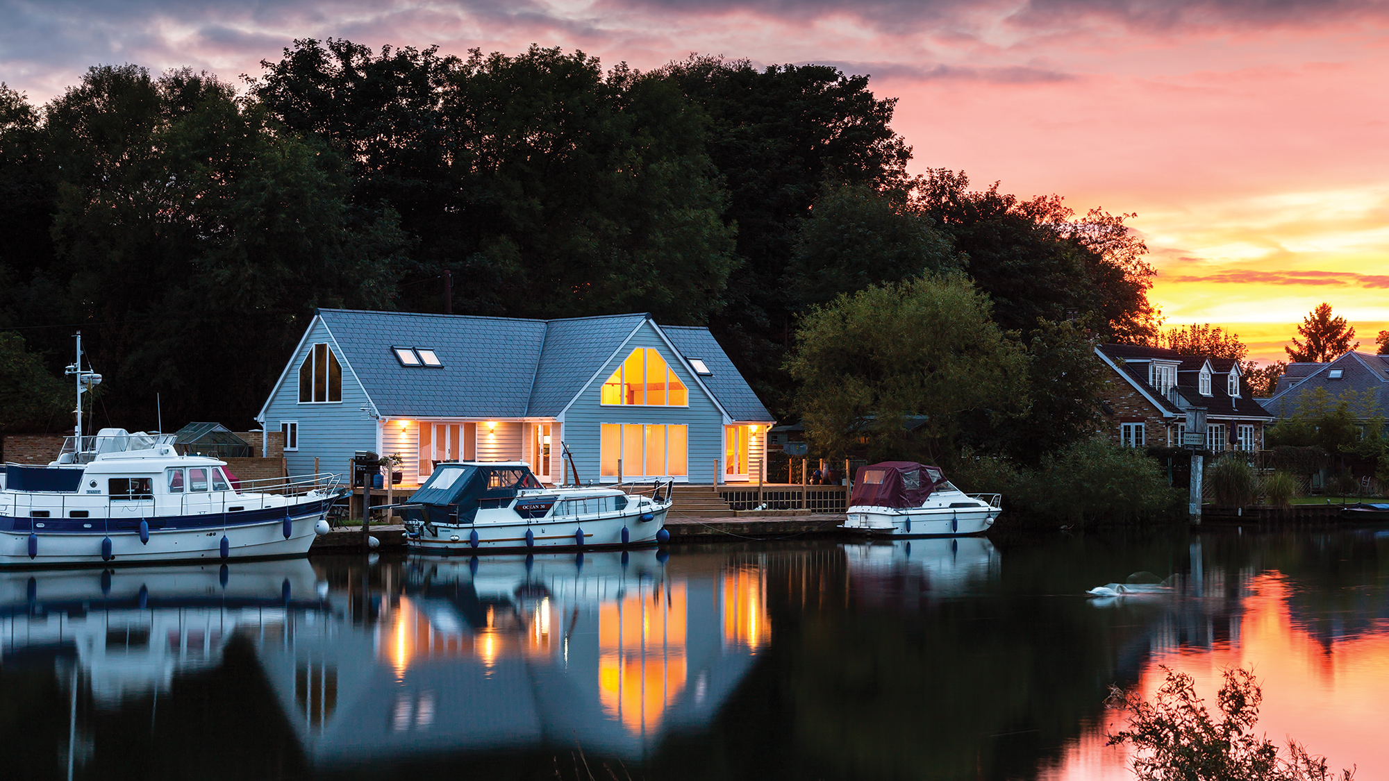 In 2002, when Bill and his wife Angie were house hunting, they snapped up a modest two-bedroom property in the village of Thorpe, near Staines in Surrey. “We’re boating people so, although the house was basically three shed-like buildings knocked together, the location was amazing, and that’s what really appealed,” says Bill. “At the back of our minds, I guess, we secretly aspired to the dream of building a fabulous home here but, at the time, that was definitely a bridge too far. We moved in and decided to see how life would pan out before committing to any future plans.”