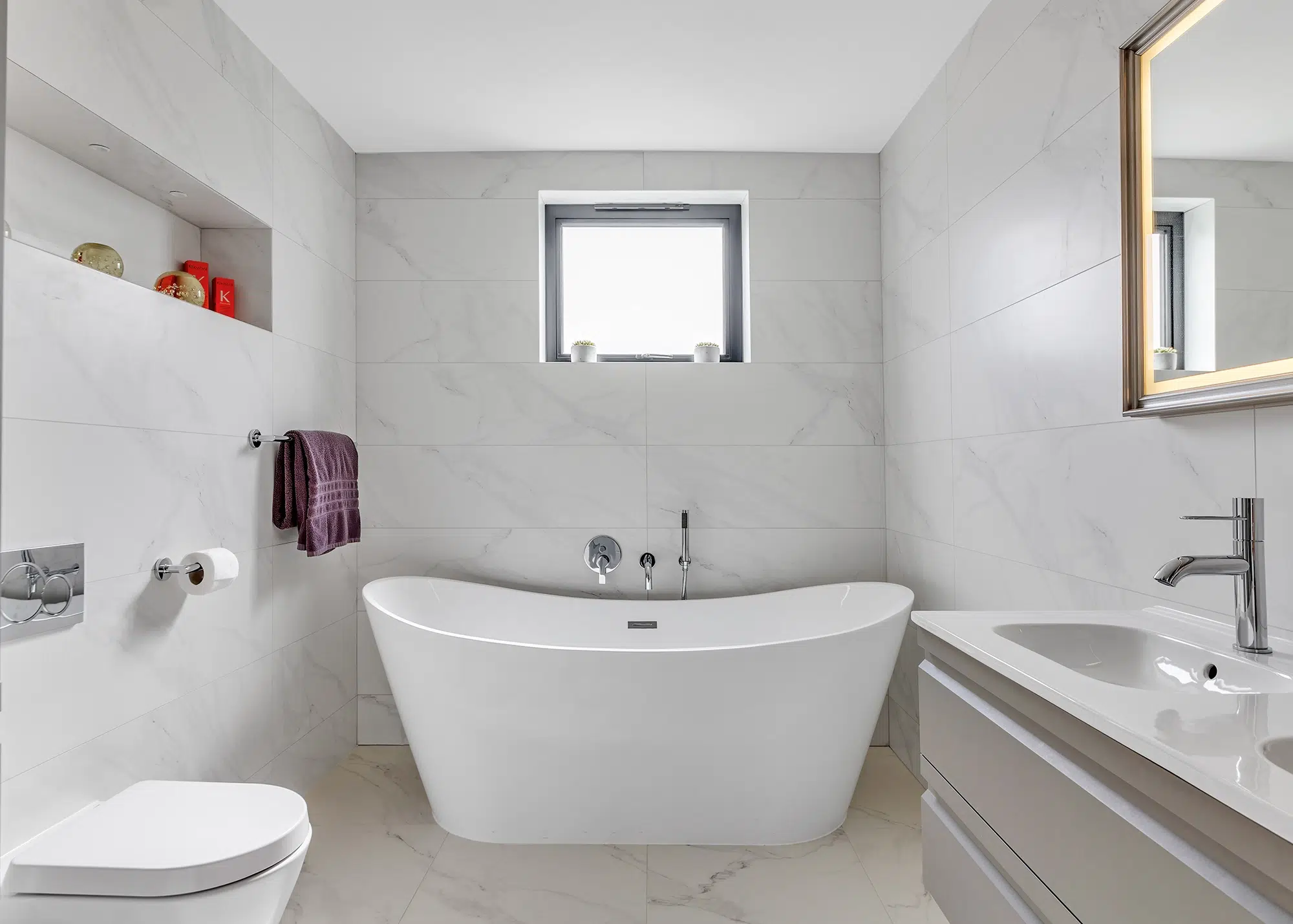 The design is clean and modern inside and out, with an atrium hallway making an impressive entrance