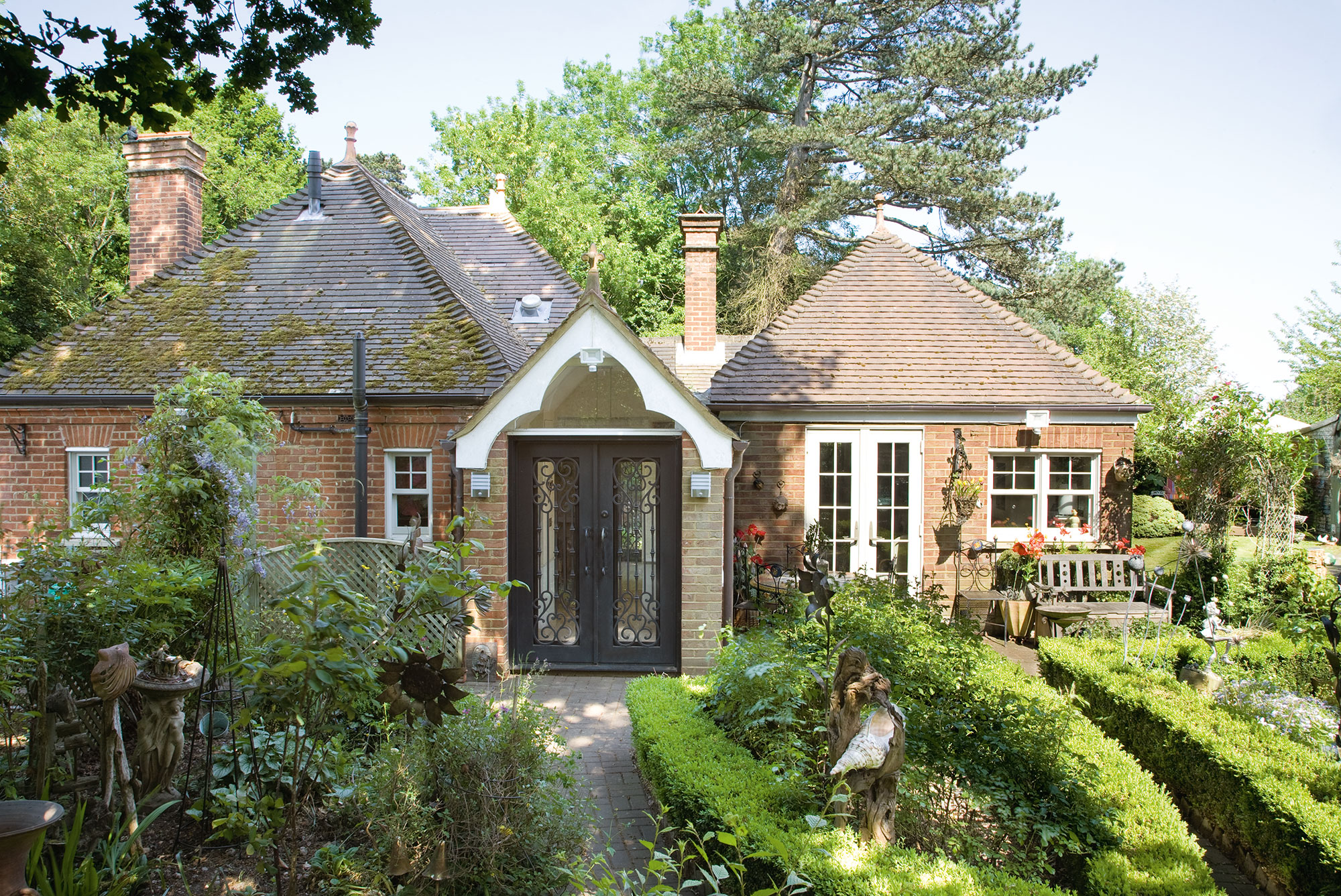 “I asked Eric to fix one of my fibreglass goblin sculptures to the top of the chimney, as bronze would have been too heavy,” says Dorienne. “He also cemented three roof corbels found from a reclamation yard to the gable roof ends.”