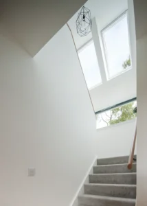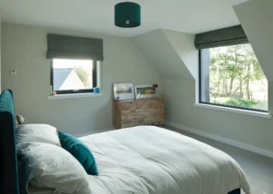 Glazing is a key feature of the home, with full height windows and rooflights used to ensure a good flow of natural illumination on both levels. Triple glazed units help to create good levels of thermal efficiency