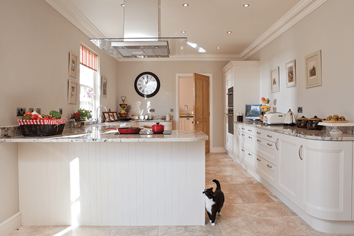 Adding a striking feature will depend on the size of the room and your budget. If you’ve got enough room for a kitchen island, these make a superb centrepiece. But if neither space nor budget permits, then there are still options to make a statement. You could have a fabulous pendant light over your table or a state of the art extractor hood – such as the Elica Celestial model that looks like a beautiful chandelier.